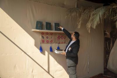 Er fügte hinzu, dass "der Prozess der Installation des Panoramas von der Abteilung für technische Wartung und Bau und der Abteilung für die Pflege des Heiligtums am heiligen Abbassitischen Schrein begleitet wurde, um die Besucher in die Atmosphäre der Fatimitischen Trauer zu versetzen, insbesondere an den Tagen ihres Märtyrertages, und umfasst mehrere Kondolenzabschnitte, die einige Details der gesegneten Biographie der Heiligen Fatima Az-Zahra (Friede mit ihr) verkörpern".