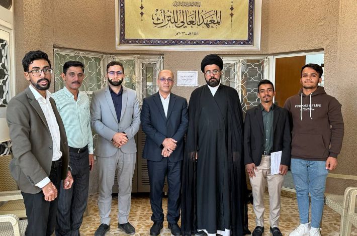 Die Delegation, die sich aus einer Reihe von Professoren und Studenten zusammensetzte, wurde vom Direktor des Höheren Instituts, Abdul Hakim al-Safi, empfangen, der sie begrüßte und über die Bemühungen des heiligen Schreins um die Wiederbelebung des imamischen Erbes informierte sowie über die verschiedenen Aktivitäten des Instituts zur Vorbereitung von Forschern und zur Förderung des juristischen und wissenschaftlichen Erbes.