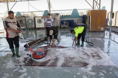 Adding: "The staff of the factory is of 12 employees working by shifts system, to continuously wash the carpets and blankets, which number per day goes from 50 to 60 carpets and from 250 to 500 blankets, a number that we can exceed according to what is sent to us."