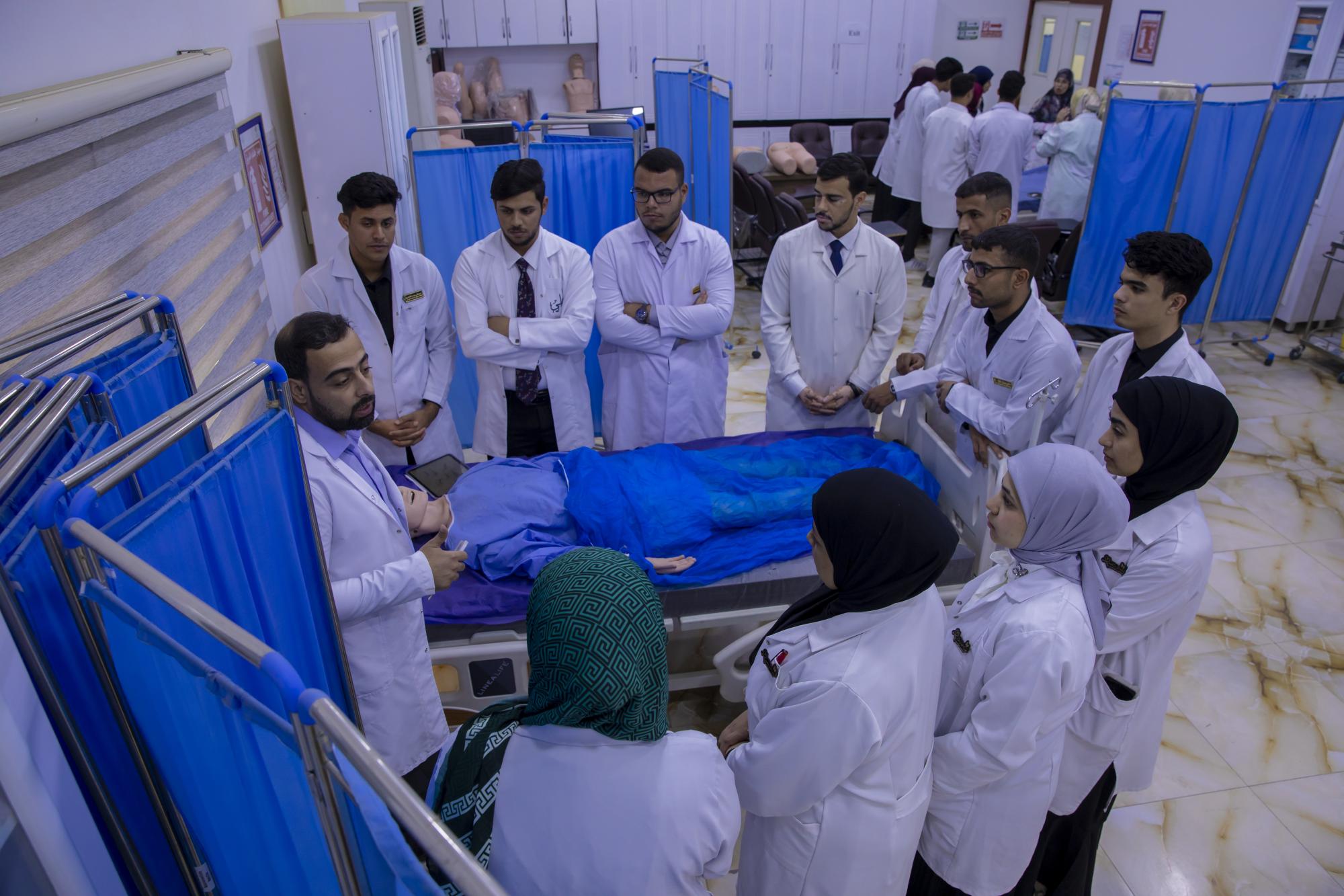 وأضاف، أن "كلّية التمريض تضم مختبرات علمية مجهّزة بأحدث الوسائل والأدوات التعليمية المتطوّرة، يتمّ تحديثها سنوياً لمواكبة التطوّرات الطبّية العالمية، إلى جانب ملاكاتٍ علمية ذات كفاءةٍ عالية تقدّم المعلومات العلمية، والتقنية، والسريرية، ممّا يمكّن الطلبة من اكتساب المهارات الضرورية للتعامل مع مختلف الحالات المرضية بكفاءة واحترافية".