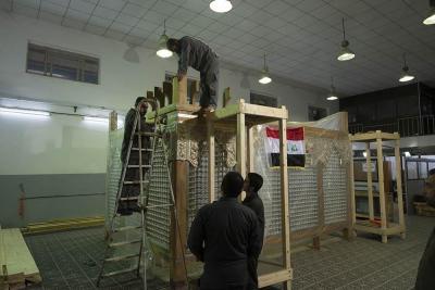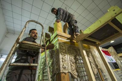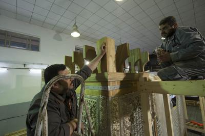 في باكورة أعمالها الخاصّة بصناعة شبابيك الأضرحة والمزارات والمقامات المطهّرة تواصل الملاكاتُ الفنية العاملة بمشروع صناعة شباك مزار مقام أمير المؤمنين(عليه السلام) ومرقد (أثيب اليماني) المعروف بـ(صافي صفا -رضي الله عنه-) في محافظة النجف الأشرف، ووصلت لمراحل متقدّمة في تصنيع أجزائه أو تركيب ما تمّ تصنيعه منها، وتجري هذه الأعمال بالتوازي مع ما تقوم به هذه الملاكات من أعمال خاصّة بشباك مرقد أبي الفضل العباس(عليه السلام) الجديد ومن دون حدوث أيّ تقاطعات في العمل وحسب الخطوط الانتاجية الخاصّة به.