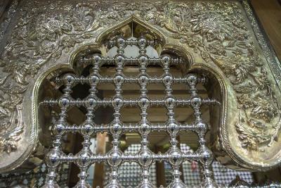 حيث تمّ الانتهاء بصورةٍ كاملةٍ من صناعة محراب أمير المؤمنين علي(عليه السلام) والذي سيمتدّ على طول الطابقين من المزار وحسب التصميم الخاص به، حيث يتألّف الطابقان من محراب وسورٍ صغير (محجّر) يحيط به من الخارج، حيث يبلغ طوله (13,25م) وارتفاعه (1,40م) والإطارات مصنّعة من مادة الخشب الصاج، أمّا المشبكات فهي من مادة (البراص) الذهبيّ، ويتكوّن من (13مقطعاً) قياس الواحد (82سم × 146سم) مع الإطار باستثناء مقطع المحراب، والذي يبلغ ارتفاعه (1,90م) ويتكوّن المقطع الواحد من (8أعمدة) و (16صفاً)، أمّا مقطع المحراب فيتكون من (8أعمدة) و (21صفاً)، وهذه المقاطع بدورها تتكوّن من (280 زبانة (القطع الواصلة بين كرةٍ وأخرى)، 128 كرة، 48 نصف كرة).