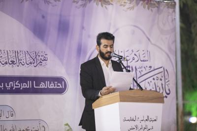 Er fügte hinzu: "Die Zeremonie wurde in Anwesenheit von Familien aus der Provinz Karbalaa und darüber hinaus abgehalten und umfasste die Teilnahme einer Reihe von Dichtern und Sängern, die Gedichte über ihr gesegnetes Andenken (Friede mit ihr) rezitierten".