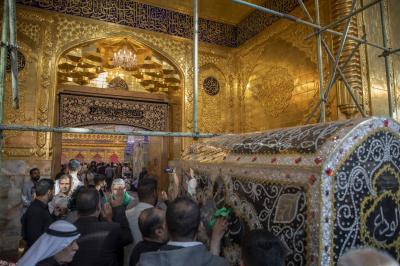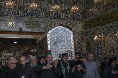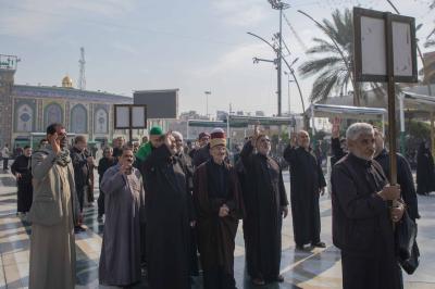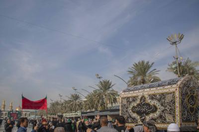 بدأت مراسم التشييع من صحن مرقد أبي الفضل العباس (عليه السلام) إذ حُمِل النعش الرمزي وسط أجواء من الحزن والتأثر، واتّجه الموكب بعد ذلك إلى مرقد الإمام الحسين (عليه السلام)، وأُقيمت مراسم التعزية، ورُدّدت الشعارات والهتافات التي تعبّر عن الفاجعة الأليمة.