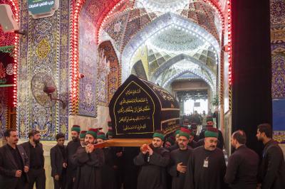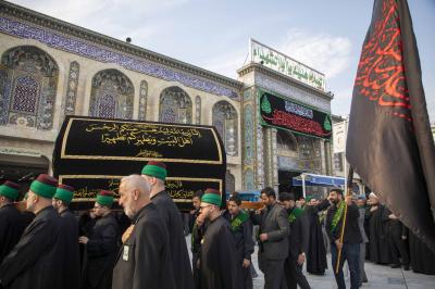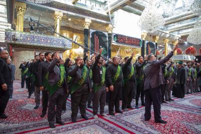 وی ادامه داد: این دسته عزاداری هنگام ورود به صحن حرم حضرت سیدالشهدا (علیه السلام) مجلس سوگواری را برگزار کرد و طی آن به مرثیه سرایی و ذكر مصيبت درباره مظلومیت حضرت فاطمه زهرا (علیها السلام) پرداخت.