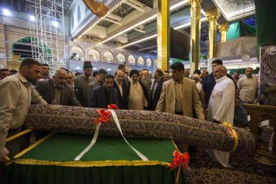 Un soir du mois de Rajab, le tombeau d'Abou Fadhl al-Abbas (p) s'est vêtu en un nouveau tapis imprimé d'une très grande qualité tissé par une équipe de 1400 artisans qui se reliaient le travail qui a duré trois ans jour et nuit. En réalité ce fut un rêve de ces artisans d'offrir quelque chose d'exceptionnel et qui soit au service des visiteurs et béni par les anges, c'est donc ainsi que ces croyants ont réalisé ce tapis qui couvre tout le sol du saint tombeau.