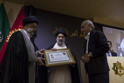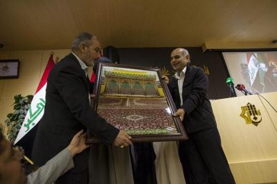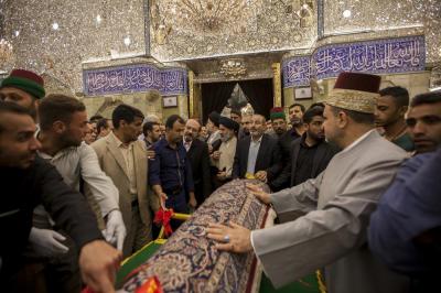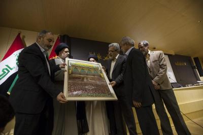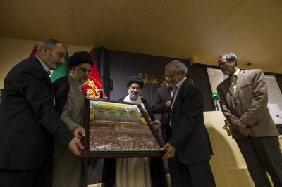 Après la mise en place, le secrétariat général organise une cérémonie d'honneur pour remercier et honorer tous les participants à ce projet, dans la salle des conférences l'Imam AlHassan (p) et après une lecture de versets coraniques Sayed Ahmad Safi s'adressant aux invités: «Allah soit loué donne beaucoup de sa grâce et sa bonté aux gens, Il donne des richesses,un prestige, une pensée, mais peu de ces chanceux savent gérer cela. Il y a également des croyants qui ont su remercier Allah pour ce savoirfaire en tissant ce tapis. Quand l'accord fut conclu, j'ai vu sur les visages une joie particulière, des émotions au point que certains furent très pressés de finir,quelques temps après nous nous sommes rendus à la ville de Kashan à l'usine nous avons constaté que les ouvriers se comportaient avec le tapis d'une façon sacrée, les femmes ne venaient qu'en état de pureté et après avoir fait les ablutions, nous avons constaté un grand sérieux et un travail de qualité et de précision, nos chers frères s'appliquaient beaucoup en leur travail, les sœurs pleuraient en remerciant Allah pour cette chance, un tapis qui sera au saint tombeau de l'Imam Hossein (p) et Abou Fadhl AlAbbas (p).»