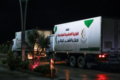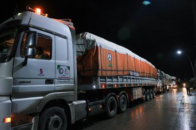 وتتكوّن قافلة المساعدات السادسة من 20 شاحنة، منها شاحنتان محمّلتان بالموادّ الطبّية والعلاجية، بينما تحمل باقي الشاحنات الموادّ الغذائية والأفرشة والملابس الشتوية المخصّصة للرجال والنساء من مختلف الأعمار، تزامناً مع انخفاض درجات الحرارة.