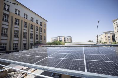 وأضاف أنَّ "القسم الآخر يعتمد نظام الـ(Hybrid) وبقدرة 30 كيلو واط، ويستخدم لتشغيل أجهزة التبريد وحفظ الأغذية في النادي الطلابي".