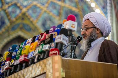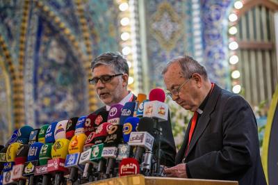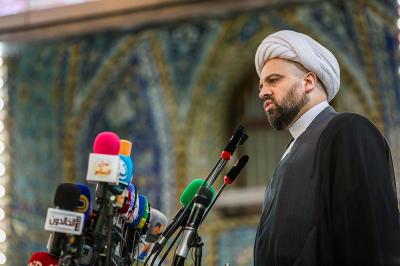 Then came the word of the religious authority Sheikh Ja'far Subhani delivered by Sheikh Al-Haydari who has prayed for the safety and peace in Iraq. Followed by a poem of the Lebanese poet George Shakoor. Then came the word of the participating delegations delivered on their behalf by Sheikh Ahmed Qablan.