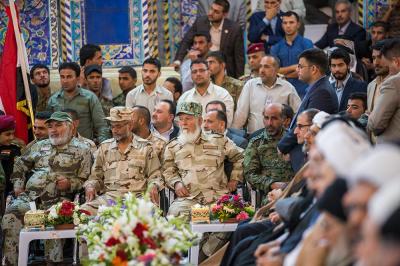 Finally, a Singing troupe from the Republic of Azerbaijan presented some religious stanzas, followed by honouring some of the heroes of the popular mobilization who have volunteered to fight against the terrorist gangs.