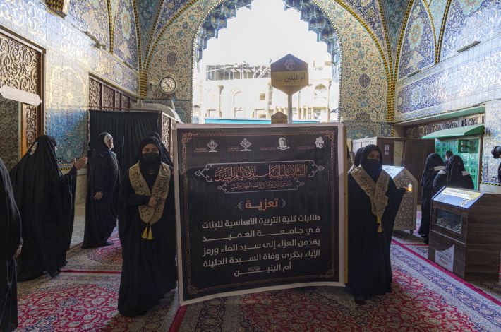 Der Vizedekan der Hochschule, Dr. Ahmed Sabih al-Kaabi, sagte: "Der Kondolenzmarsch findet jedes Jahr am Abbassitischen Schrein statt, um ihm am Todestag von Sayeda Umm Al-Baneen (Friede mit ihm) zu kondolieren".