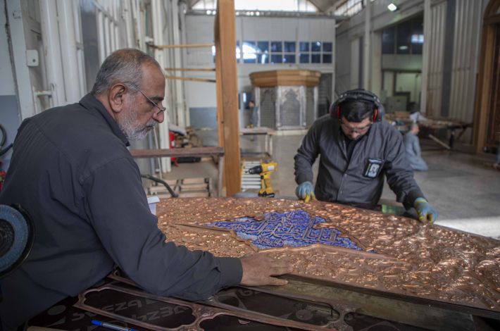 Der Leiter der Abteilung, Herr Nadhem Al-Gharabi, sagte: "Das Personal arbeitet an der Herstellung des ersten Tores des Schreins von Aba al-Fadl Al-Abbass (Friede mit ihm).