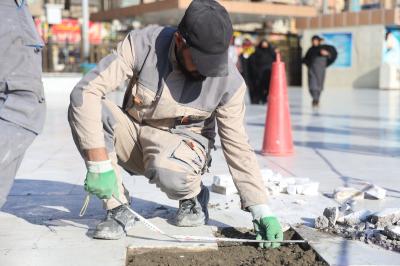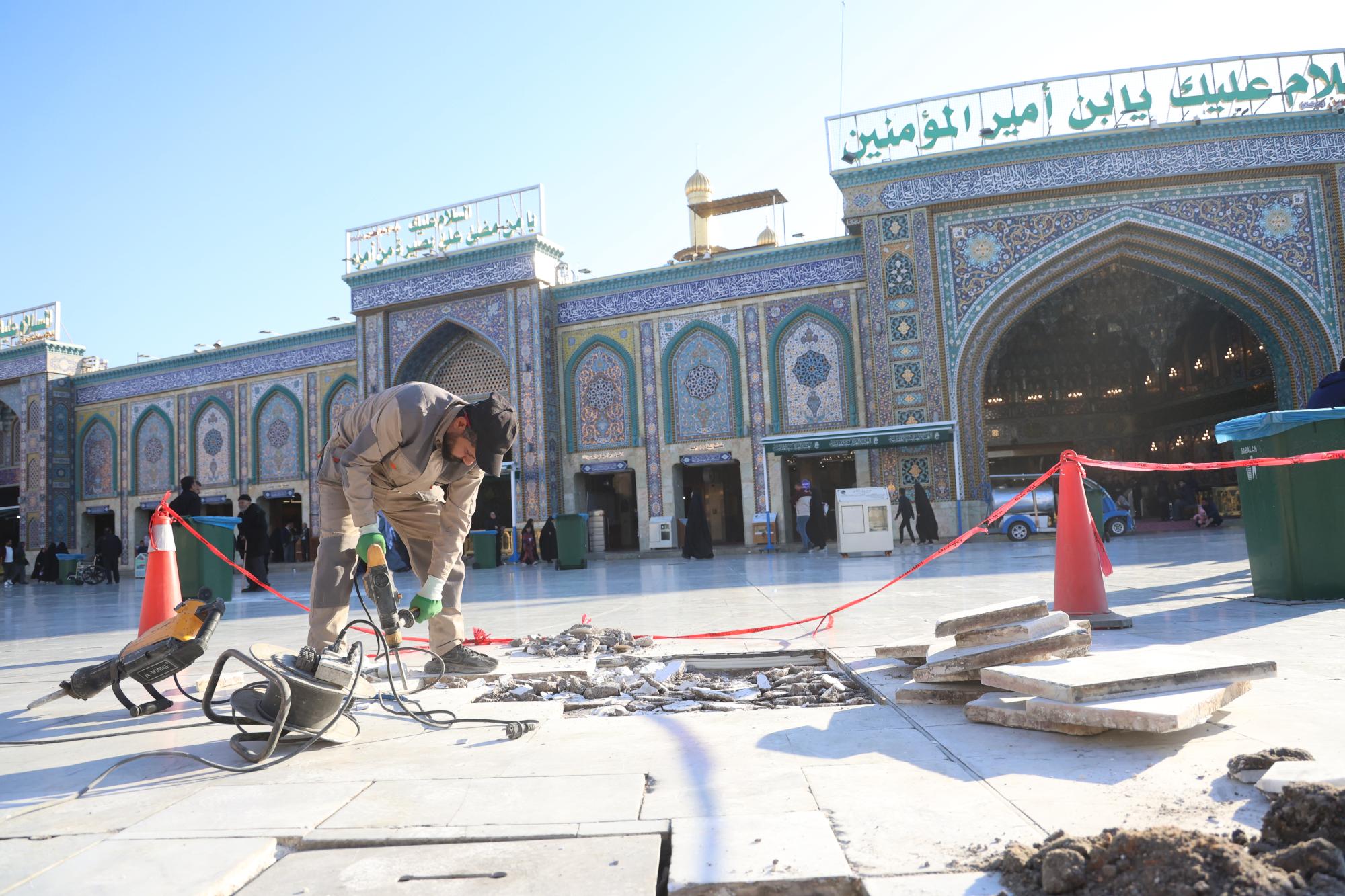 The official of the general maintenance division in the Department, Engineer Mohammed Jassim Al-Yasari, said that "our staff continues its efforts in maintaining the affected areas in the central square, between the shrines of Imam al-Hussayn and his brother Aba al-Fadl al-Abbas(peace be upon them), as part of a comprehensive plan to preserve the safety and aesthetics of the place".