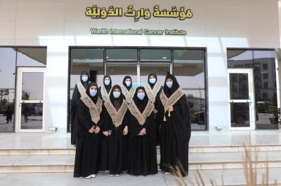 El-Amid Üniversitesi Kız Temel Eğitim Fakültesi, Mukaddes Hz. Hüseyin (a.s.) Türbesi 'ne bağlı Waris Uluslararası Kanser Onkoloji Merkezi'nde tedavi gören kanser hastası çocuklara insani bir ziyaret düzenledi.