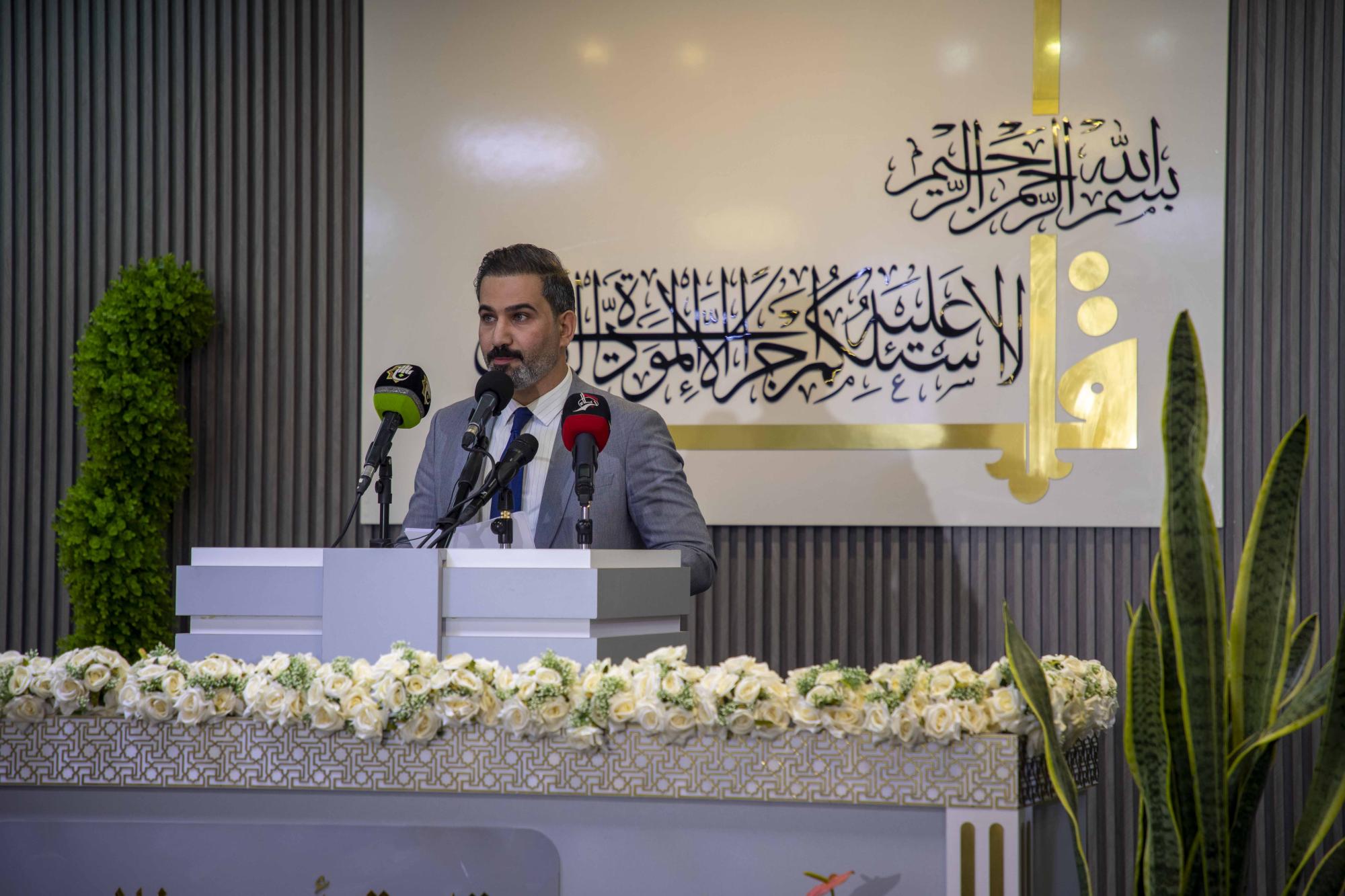 Etkinlikler, kompleksin müfettişi Seyyid Mekki es-Safi adına Seyyid Ahmed Şerar'ın yaptığı konuşmayla başladı. Konuşmada projenin, ilim ve amelin sembolleri olan ve olmaya devam eden Ehl-i Beyt İmamlarının (a.s.) yolundan ilham alarak din ve topluma hizmet için bir umut ışığı ve ilmi ışınım kaynağı olduğunu belirtti. Projenin vizyonu ve anlamının, Müminlerin Emiri (a.s.) Kompleksi ve Kamer-i Beni Haşim Dini Medresesinin sadece binalar veya kurumlar olarak değil, adalet, ilim ve amel imamı Hz. Ali bin Ebi Talib'in (a.s.) mesajını taşıyan ve mübarek hayatından yenilenen ihsan anlamlarını alan canlı merkezler olarak kurulduğundan kaynaklandığını açıkladı. Kompleks, ilim ile Hüseyni ve sosyal hizmet arasını birleştiriyor, bu nedenle toplumun tüm kesimlerine hizmet eden eğitim ve sosyal hizmetler sunmayı ve Müminlerin Emiri'nin adını taşıyarak imamın insana hizmet için ilim ve ameli birleştirme konusunda kurduğu yola şahit olmayı amaçlıyor.