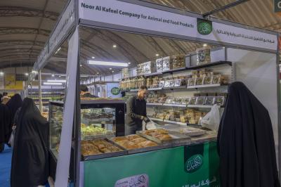 La société de produits animaux et alimentaires Nour Al-Kafeel a présenté 200 produits de son panier alimentaire intégré composé de viande rouge et blanche, de tous types de produits laitiers, de matières sèches, d'aliments prêts à manger et d'épices, en plus des boulangeries Nour Al-Kafeel qui vendent avec des pâtisseries et des friandises.