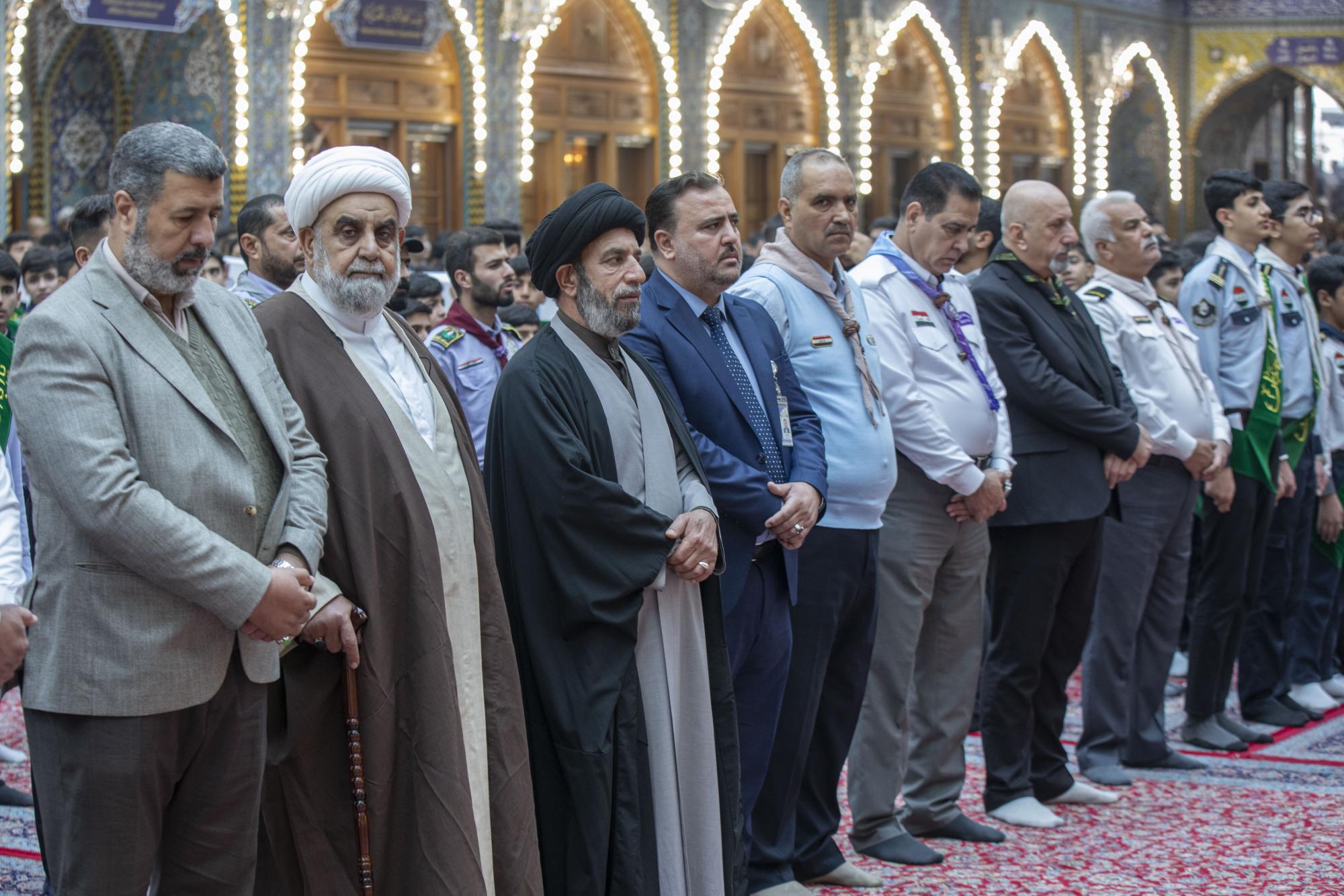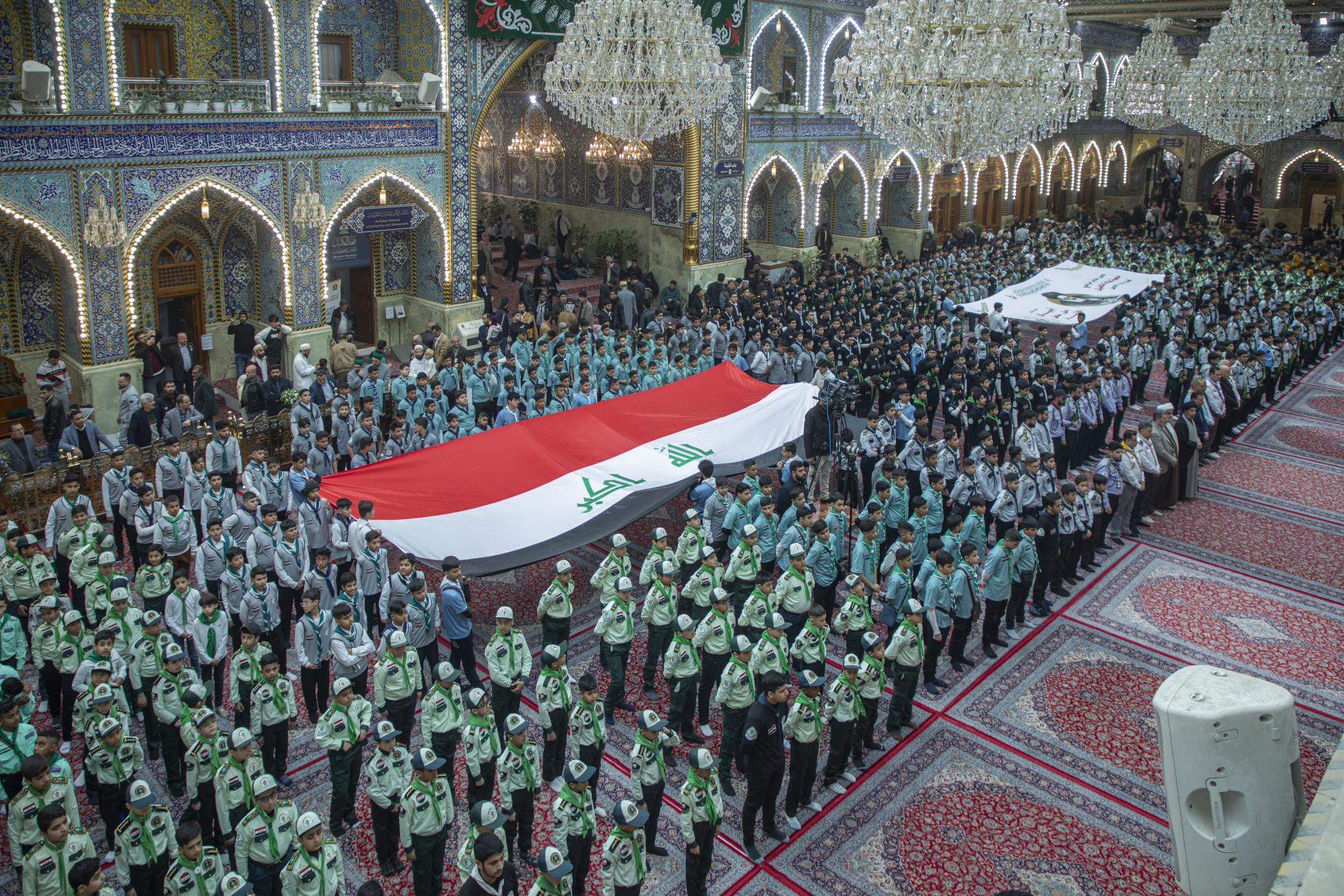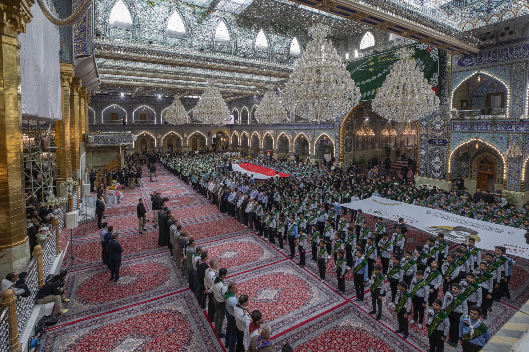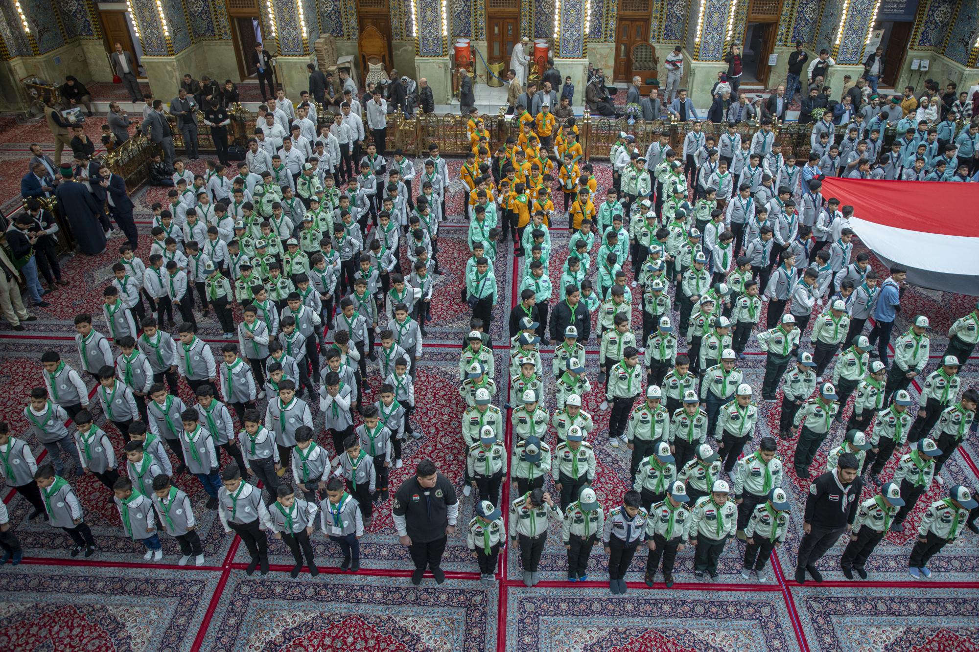 Plus de 1000 scouts ont participé à la cérémonie, arrivant au sanctuaire sacré d'al-Abbas (p) par les portes de l'Imam Ali et de l'Imam Al Hussein (que la paix soit sur eux), pour se rassembler dans les sous-sols de l'Imam Ali et de l'Imam Al Hassan (que la paix soit sur eux) en préparation de l'entrée dans la cour d'Aba al-Fadl al-Abbas (que la paix soit sur lui) et de l'accomplissement du serment de scout dans sa cour sacrée.