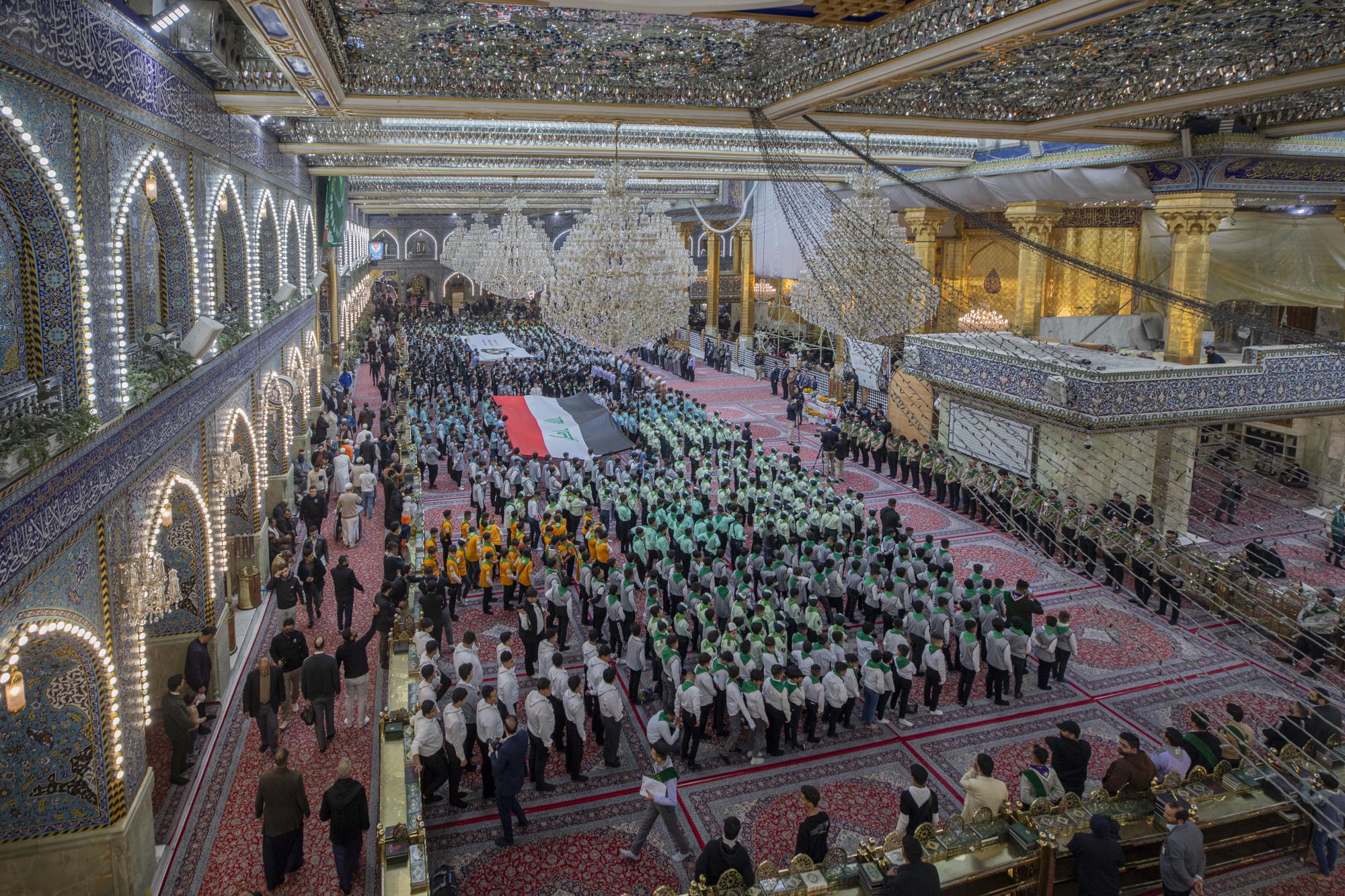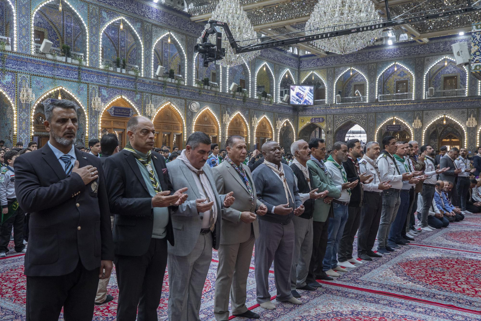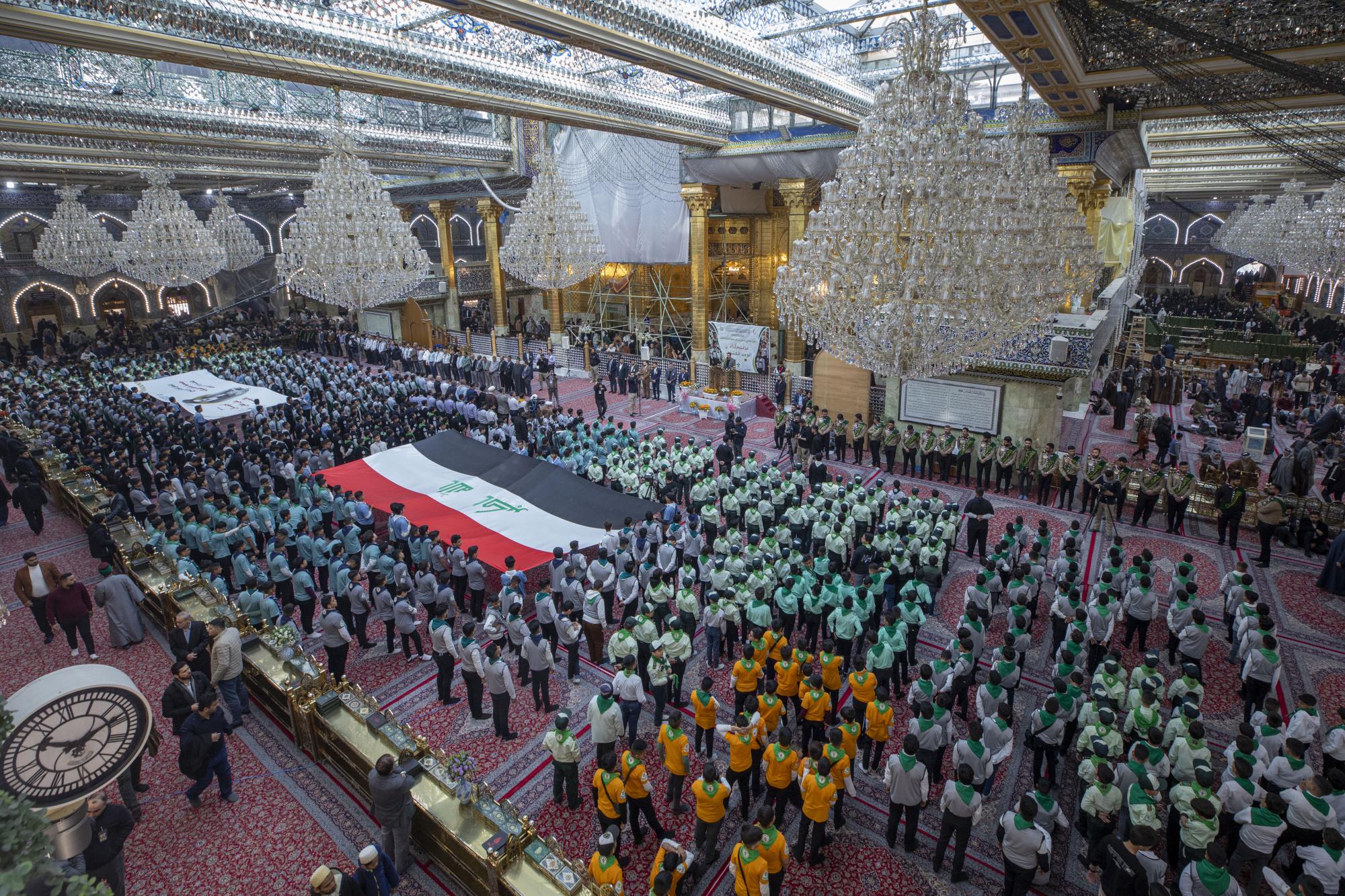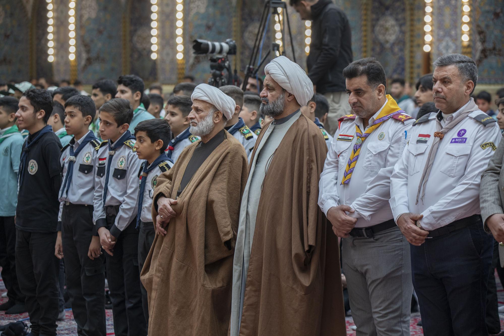 Plus de 1000 scouts ont participé à la cérémonie, arrivant au sanctuaire sacré d'al-Abbas (p) par les portes de l'Imam Ali et de l'Imam Al Hussein (que la paix soit sur eux), pour se rassembler dans les sous-sols de l'Imam Ali et de l'Imam Al Hassan (que la paix soit sur eux) en préparation de l'entrée dans la cour d'Aba al-Fadl al-Abbas (que la paix soit sur lui) et de l'accomplissement du serment de scout dans sa cour sacrée.