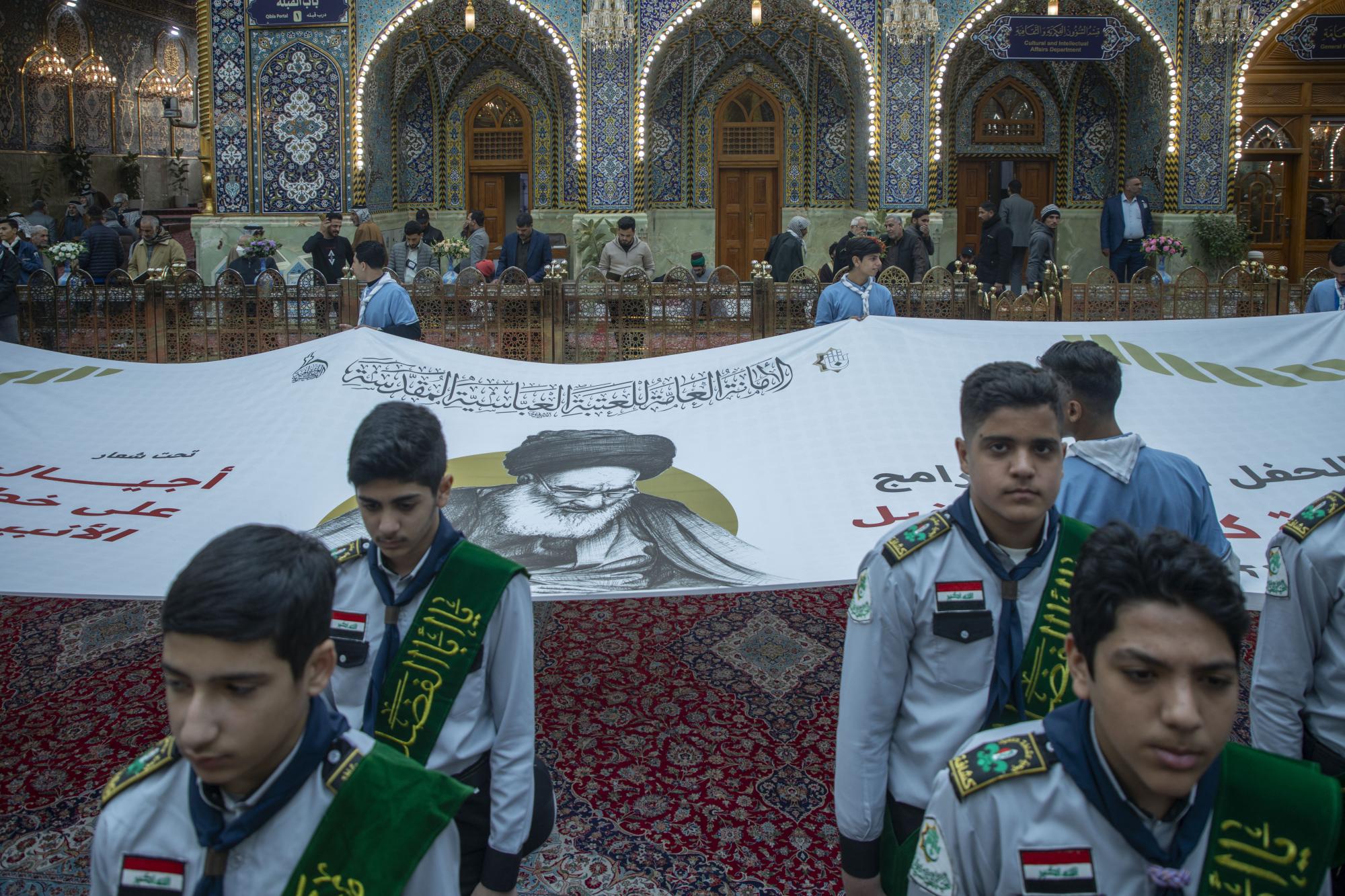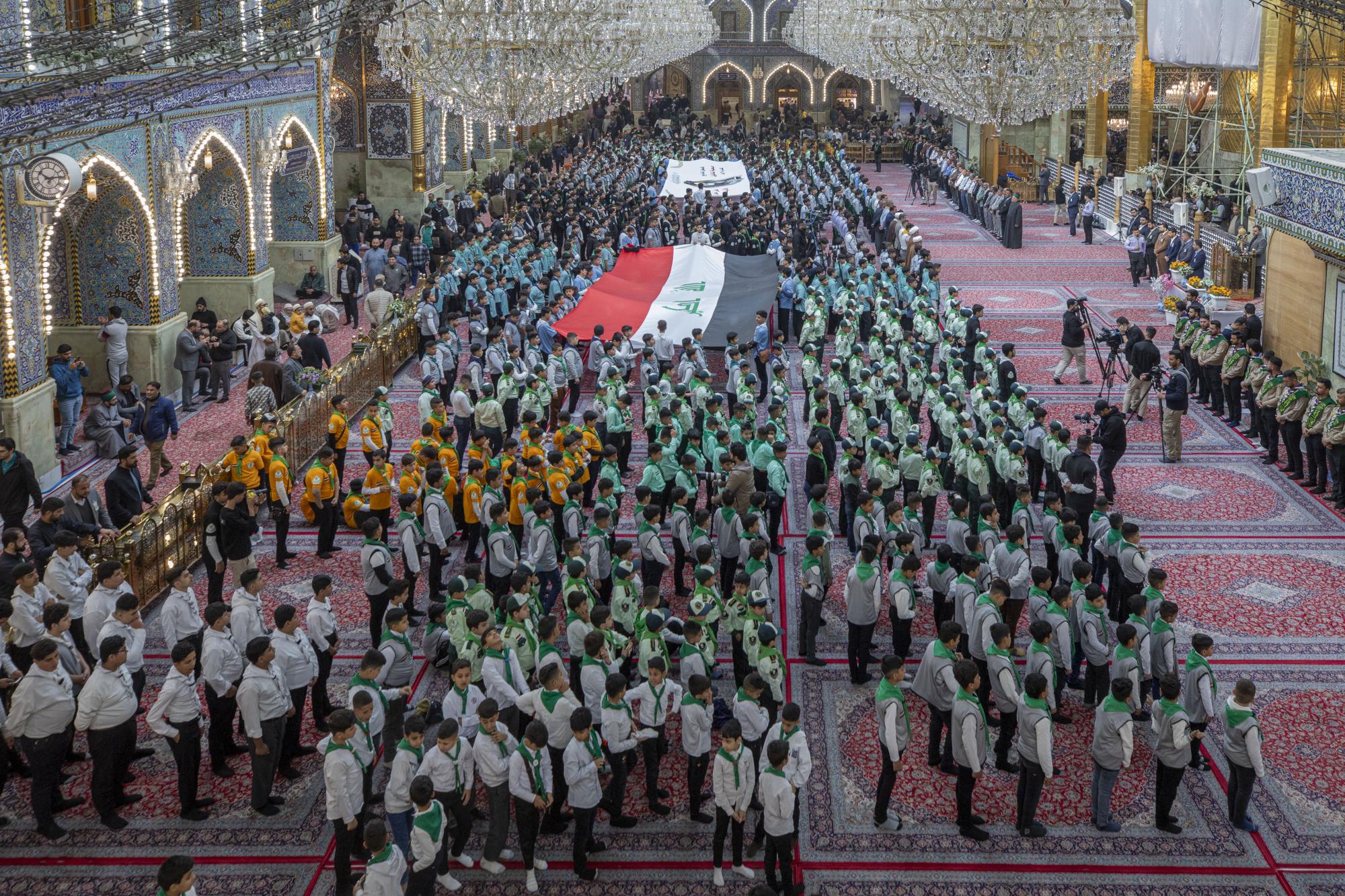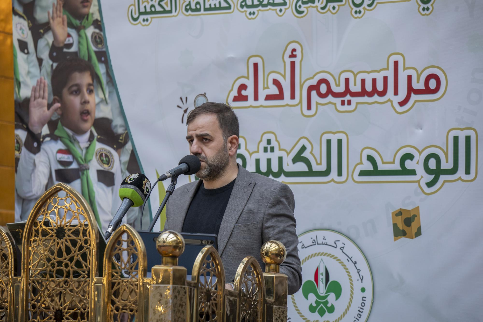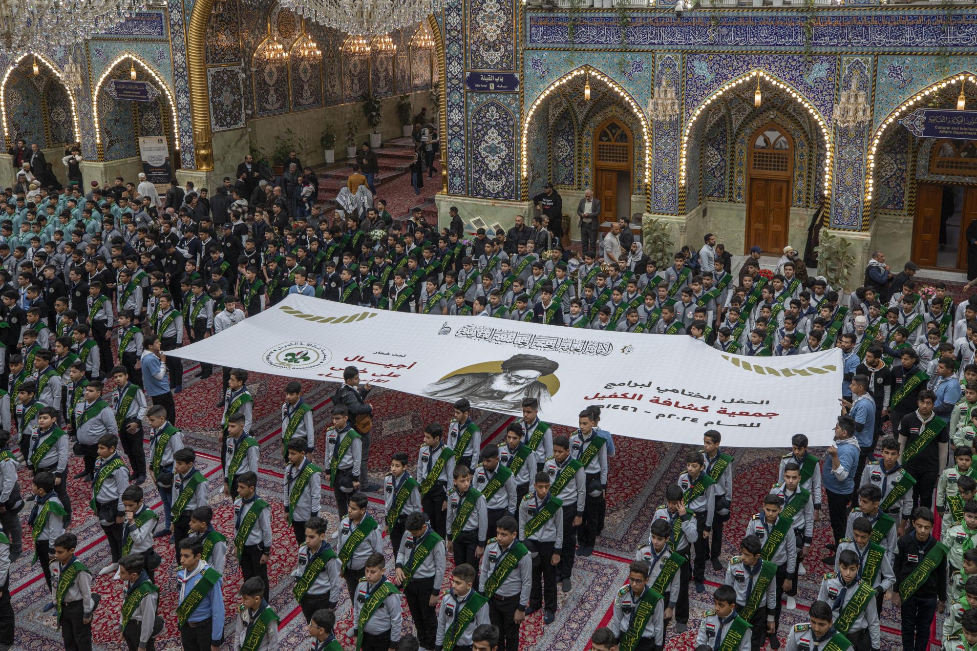 Plus de 1000 scouts ont participé à la cérémonie, arrivant au sanctuaire sacré d'al-Abbas (p) par les portes de l'Imam Ali et de l'Imam Al Hussein (que la paix soit sur eux), pour se rassembler dans les sous-sols de l'Imam Ali et de l'Imam Al Hassan (que la paix soit sur eux) en préparation de l'entrée dans la cour d'Aba al-Fadl al-Abbas (que la paix soit sur lui) et de l'accomplissement du serment de scout dans sa cour sacrée.