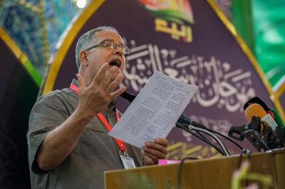 الشاعر معن غالب بيّن من جانبه: "جاءت هذه الأمسيةُ الشعرية لإيصال صوت الإمام الحسين(عليه السلام) للعالم أجمع، ومن أجل نصرة القضية الحسينية التي هي قضيةُ الإنسانية جمعاء، فهو لم يخرج إلّا لنصرة الإنسان المظلوم أيّاً كان انتماؤه أو عرقُه. خرج لمحاربة الظلم والفساد والطغيان والرذيلة، ولينشر فكر الرسالة الإسلامية السمحاء التي أحقّت الحقّ بتعاليمها، فكان الحسين(عليه السلام) قدوةً لكلّ أحرار العالم".