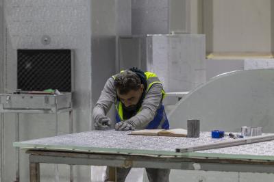 وبيّن أنّ "الهيكل الكونكريتي للورشة، أُنشئ طبقًا للمواصفات المطلوبة، إذ وصلت نسب الإنجاز فيها إلى 65%، وتبقت مراحل قليلة سيتم إنجازها لتُفتتح الورشة بعد ذلك".