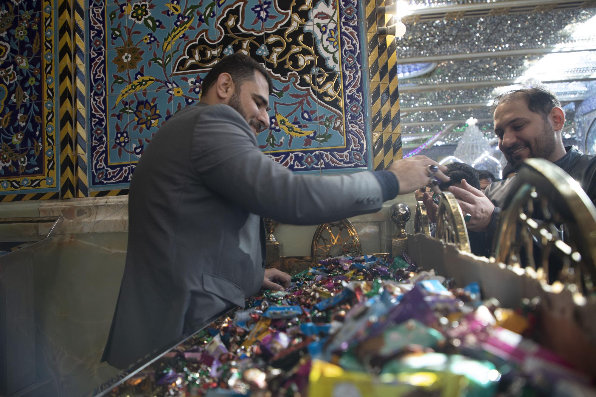 وقال معاون رئيس القسم، السيد زين العابدين القريشي إنّ ملاكات القسم تحرص في كل مناسبة خاصة بذكرى الولادات الميمونة لأهل البيت (عليهم السلام) على توزيع العطور والورد وقطع الحلوى، على الزائرين المهنئين الوافدين لزيارة قمر العشيرة (عليه السلام)".