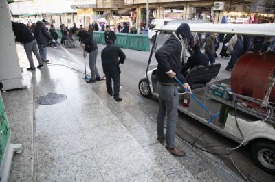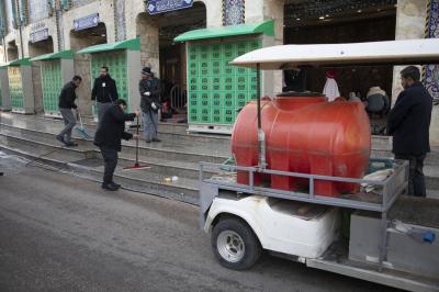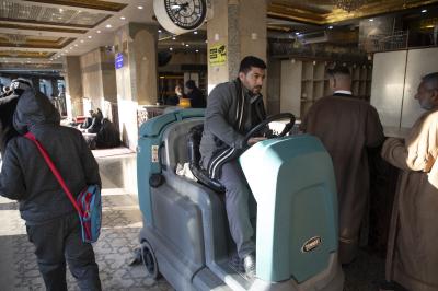 Er fügte hinzu, dass "die Reinigungskampagne das Qibla-Tor des Abbassitischen Schreins, die Orte rund um die Kishwaniyats und Tresore, zusätzlich zu den Sitzbereichen der Besucher umfasst", und wies darauf hin, dass "das Personal der Abteilung Reinigungsmaschinen in der Kampagne verwendet".