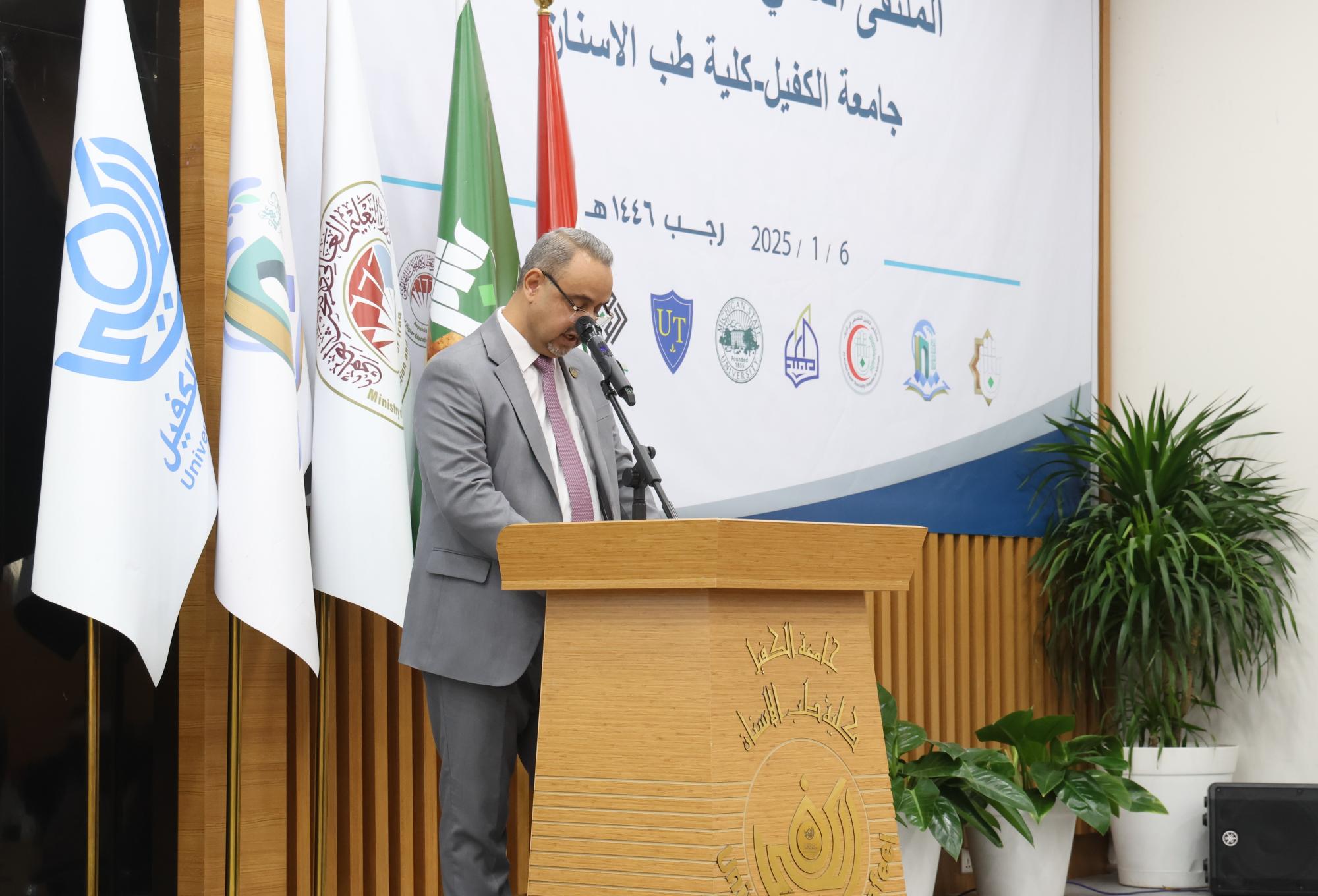 جاء ذلك عَبرَ كلمة له ألقاها في الملتقى الذي أقيم ضمن فعاليات المؤتمر العلمي السادس لجامعة الكفيل بحضور رئيس الجامعة الدكتور نورس الدهان وعدد من أساتذة الكلية والطلبة الخريجين.