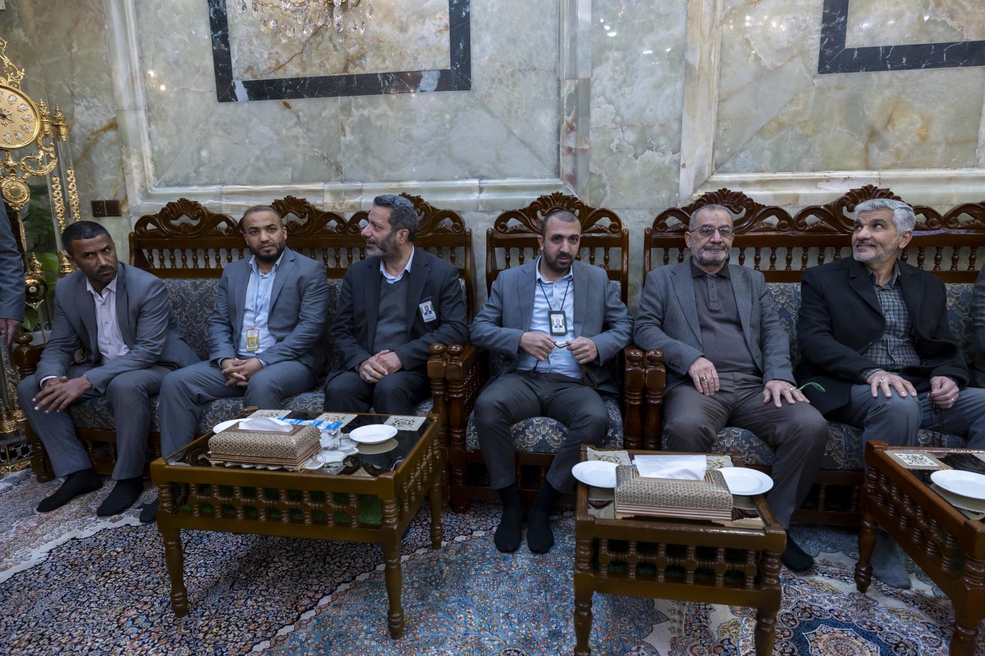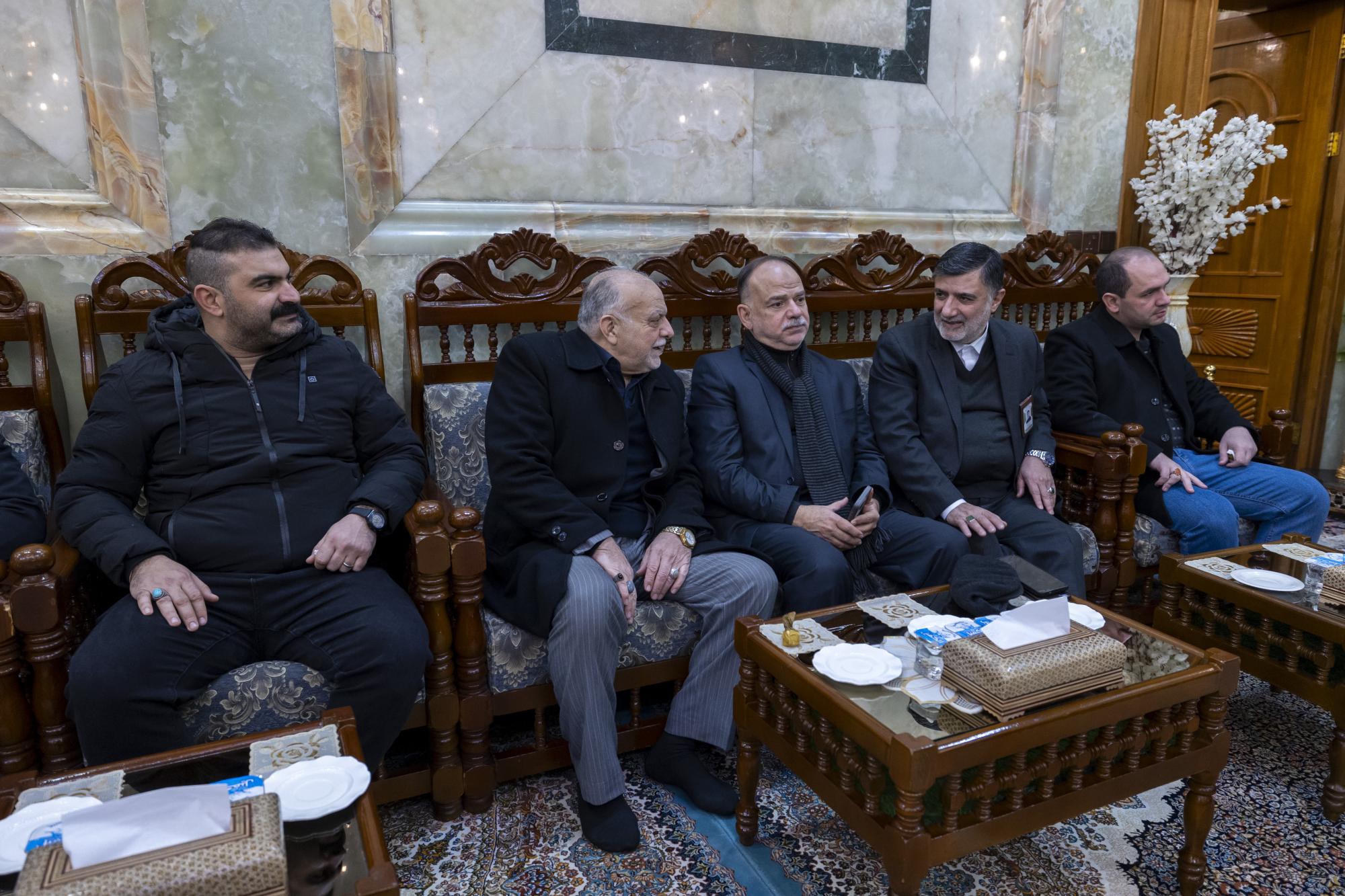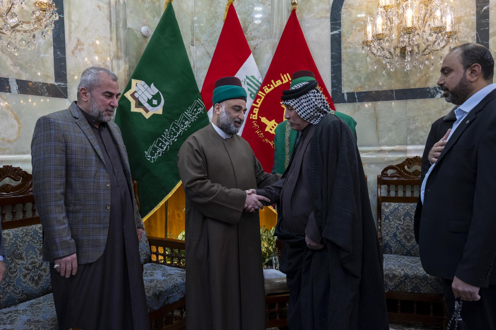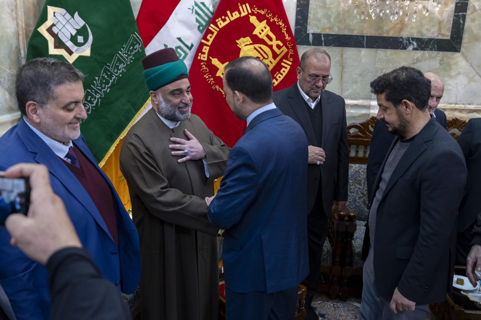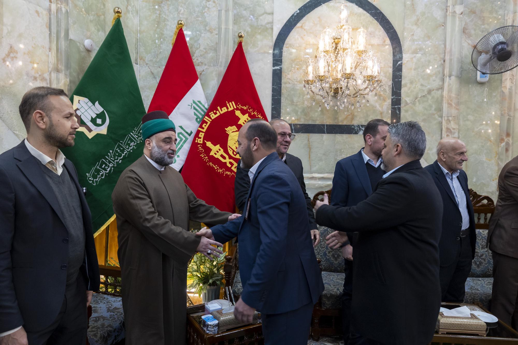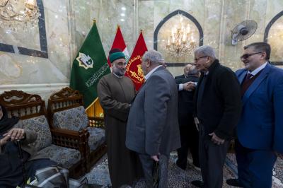 Der Generalsekretär des heiligen Abbassitischen Schreins, Sayed Mustafa Mortadha Aal Dia-Uddin, empfängt weiterhin Gratulanten, die sich anlässlich seiner Wiederernennung durch das schiitische Stiftungsbüro für weitere drei Jahre als Generalsekretär des heiligen Schreins versammelt haben.