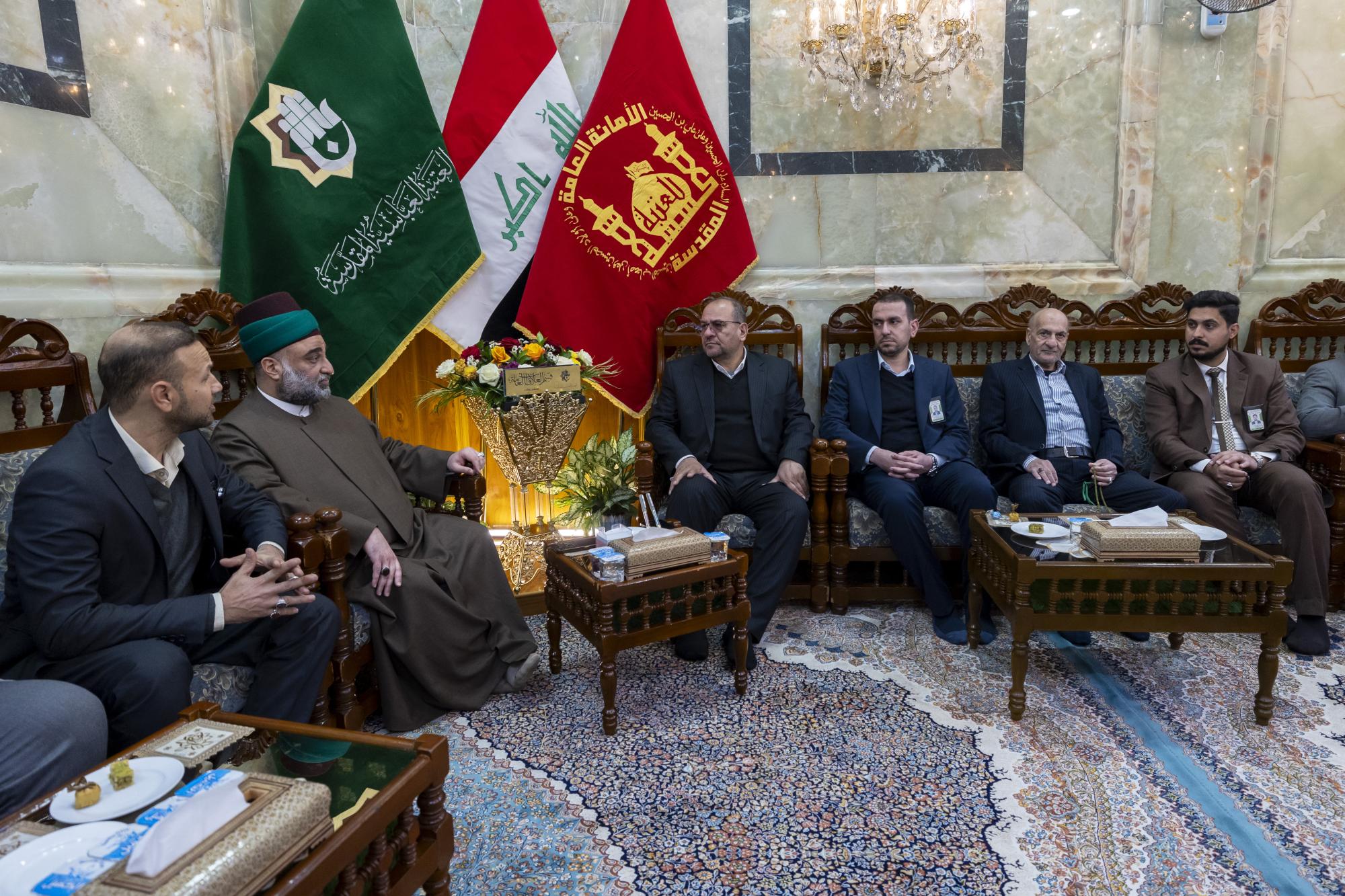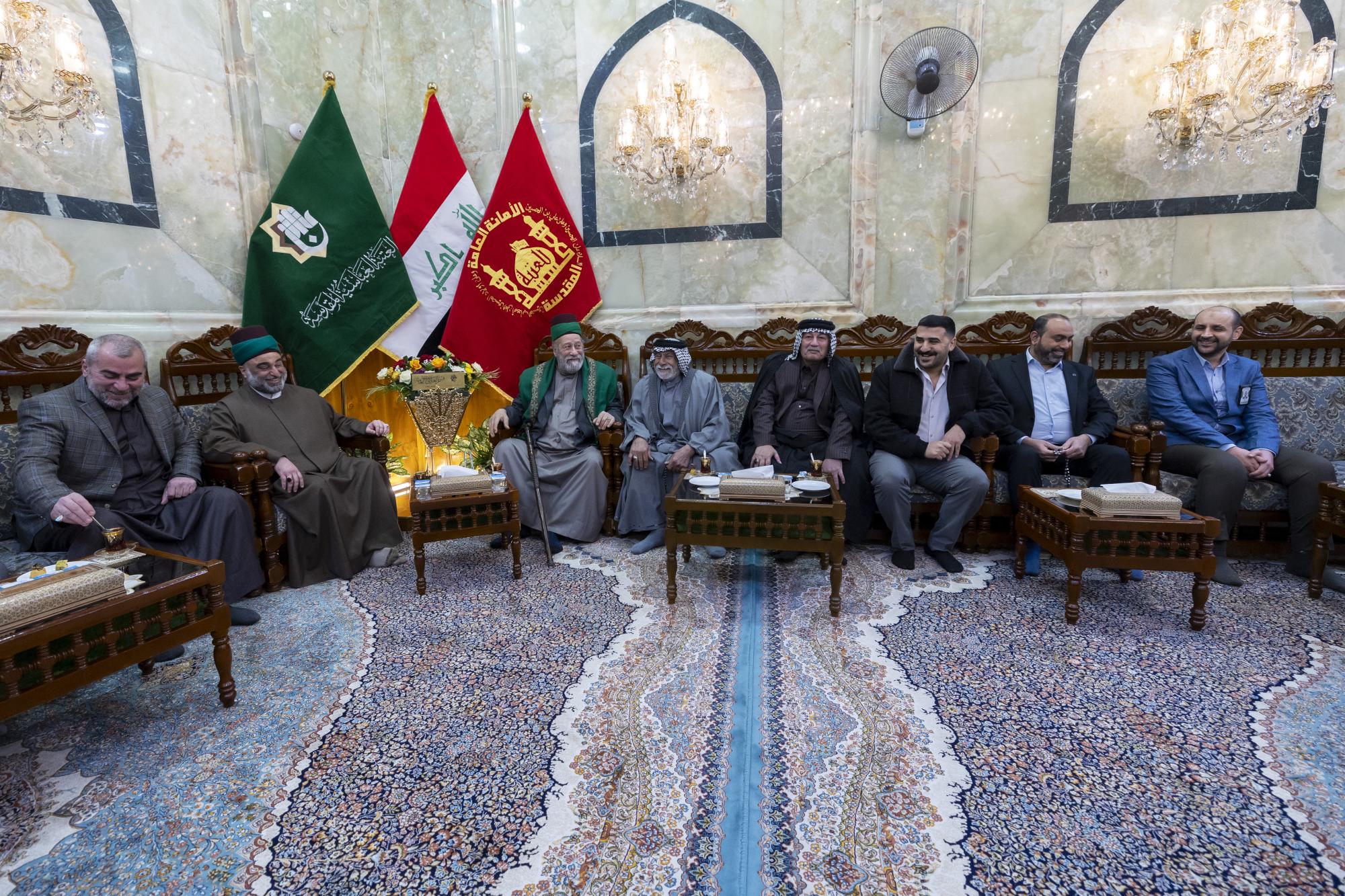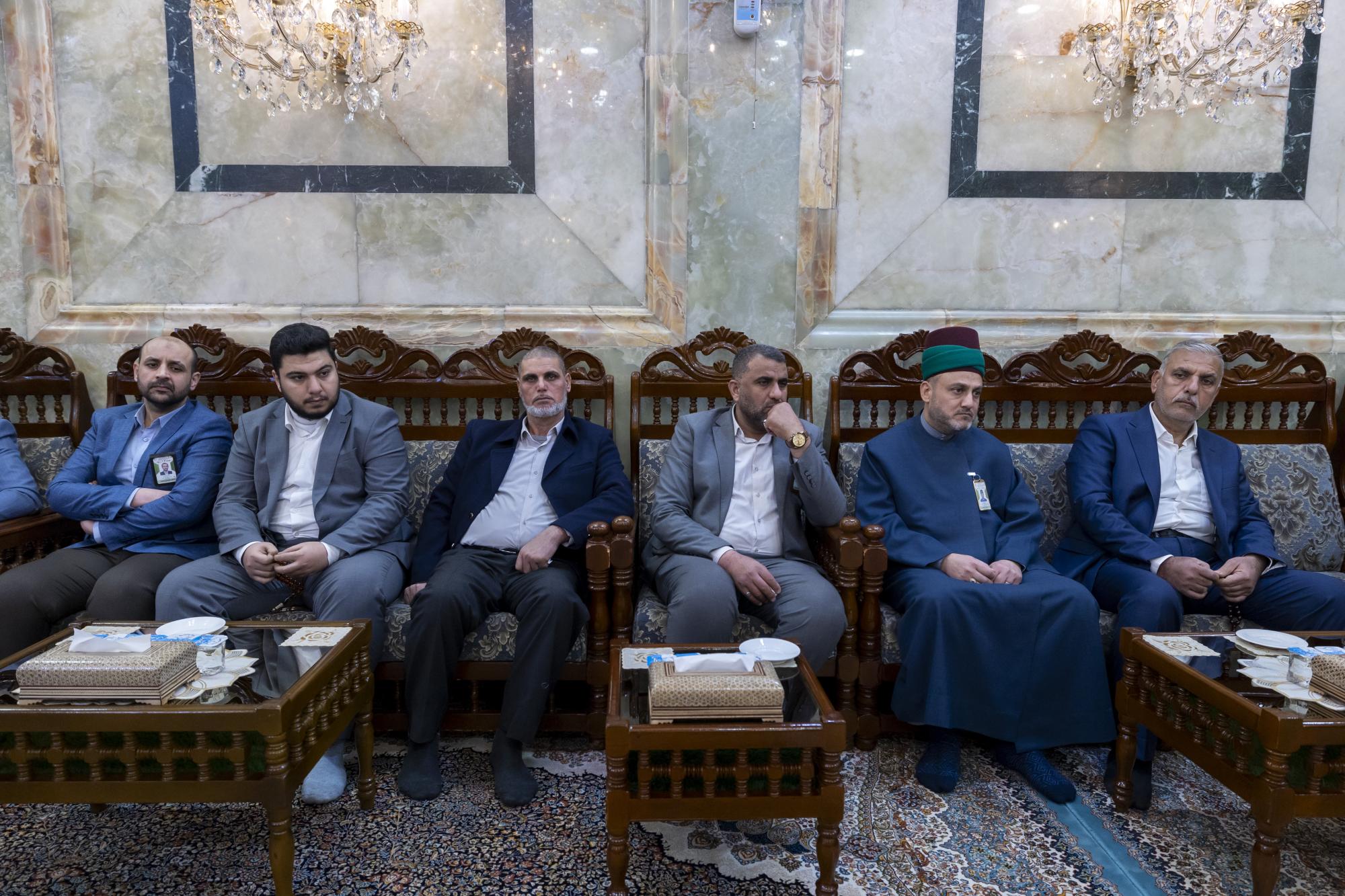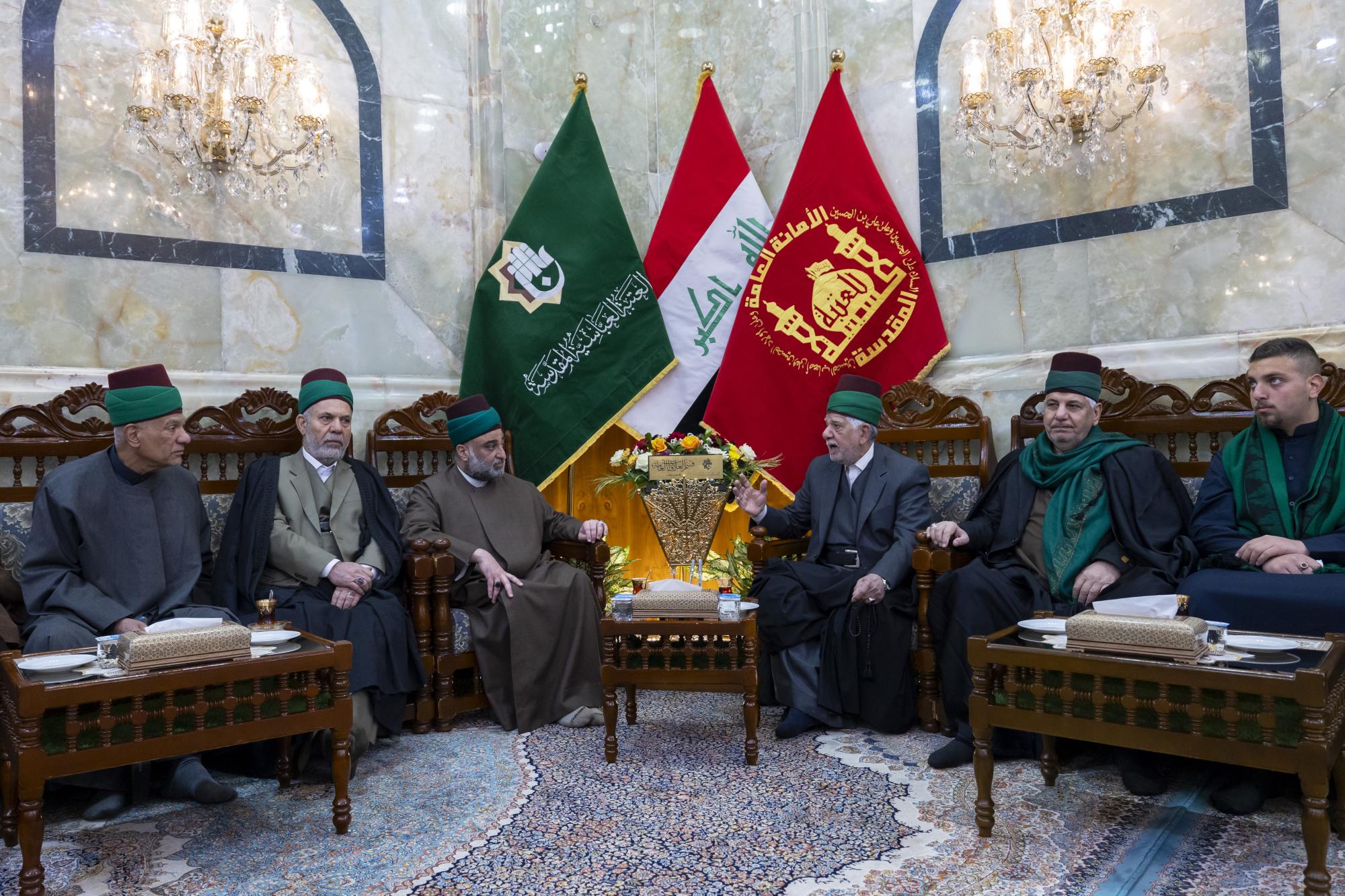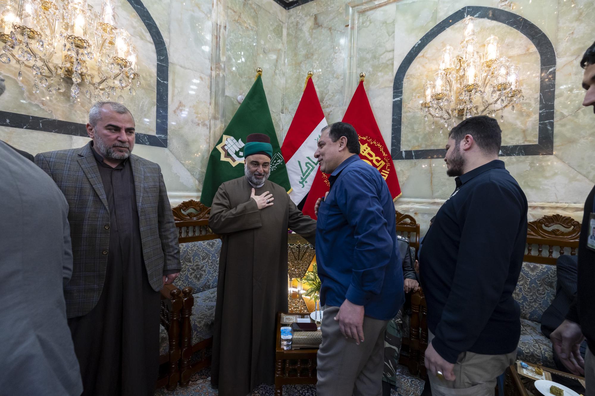 Der Generalsekretär des heiligen Abbassitischen Schreins, Sayed Mustafa Mortadha Aal Dia-Uddin, empfängt weiterhin Gratulanten, die sich anlässlich seiner Wiederernennung durch das schiitische Stiftungsbüro für weitere drei Jahre als Generalsekretär des heiligen Schreins versammelt haben.