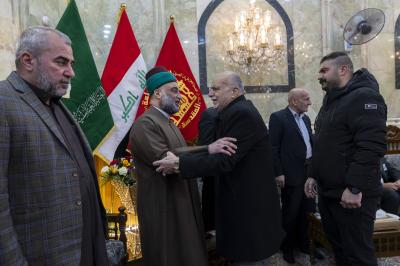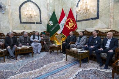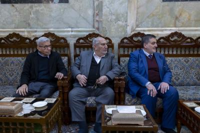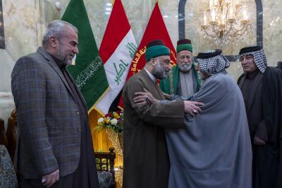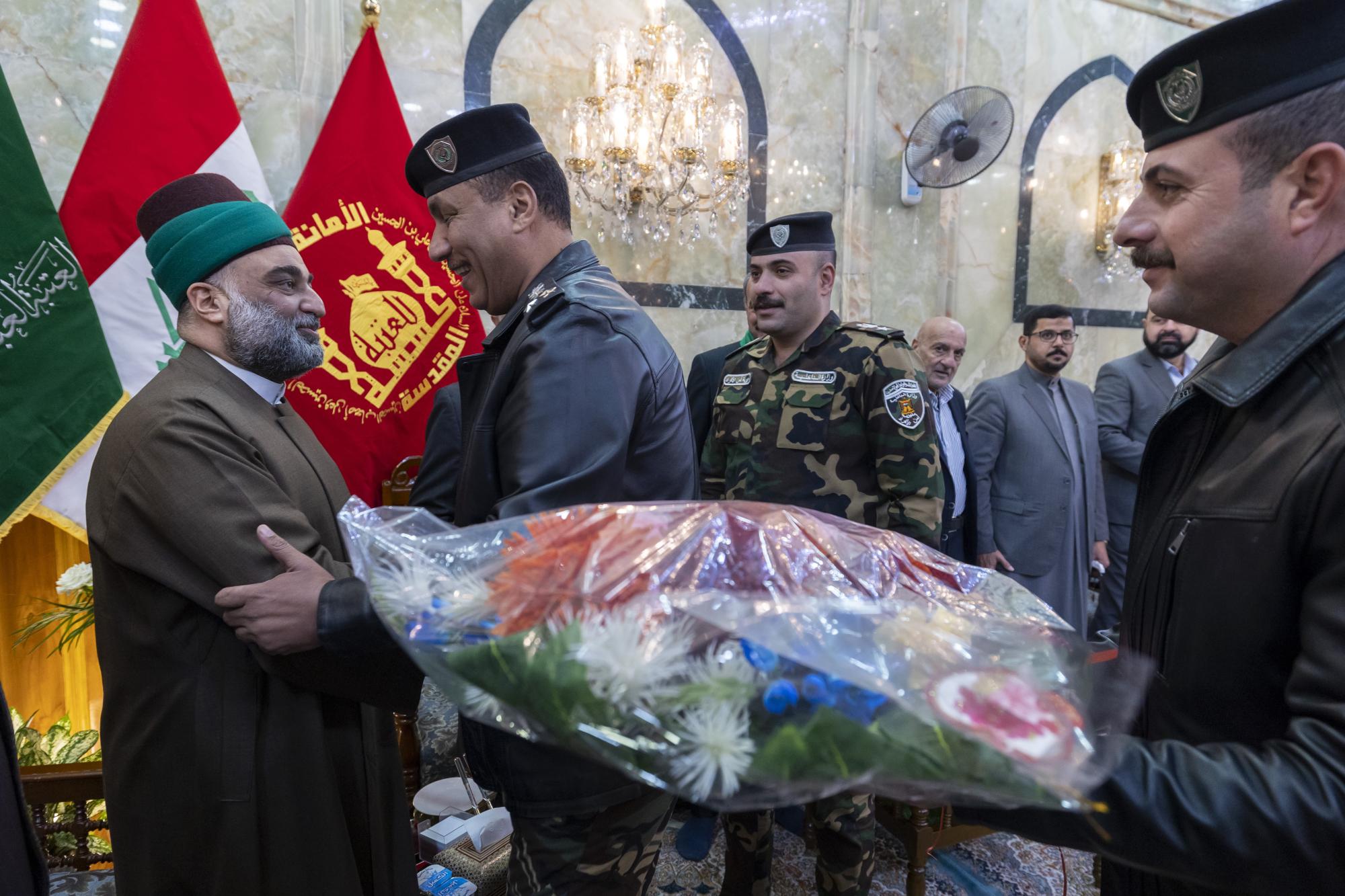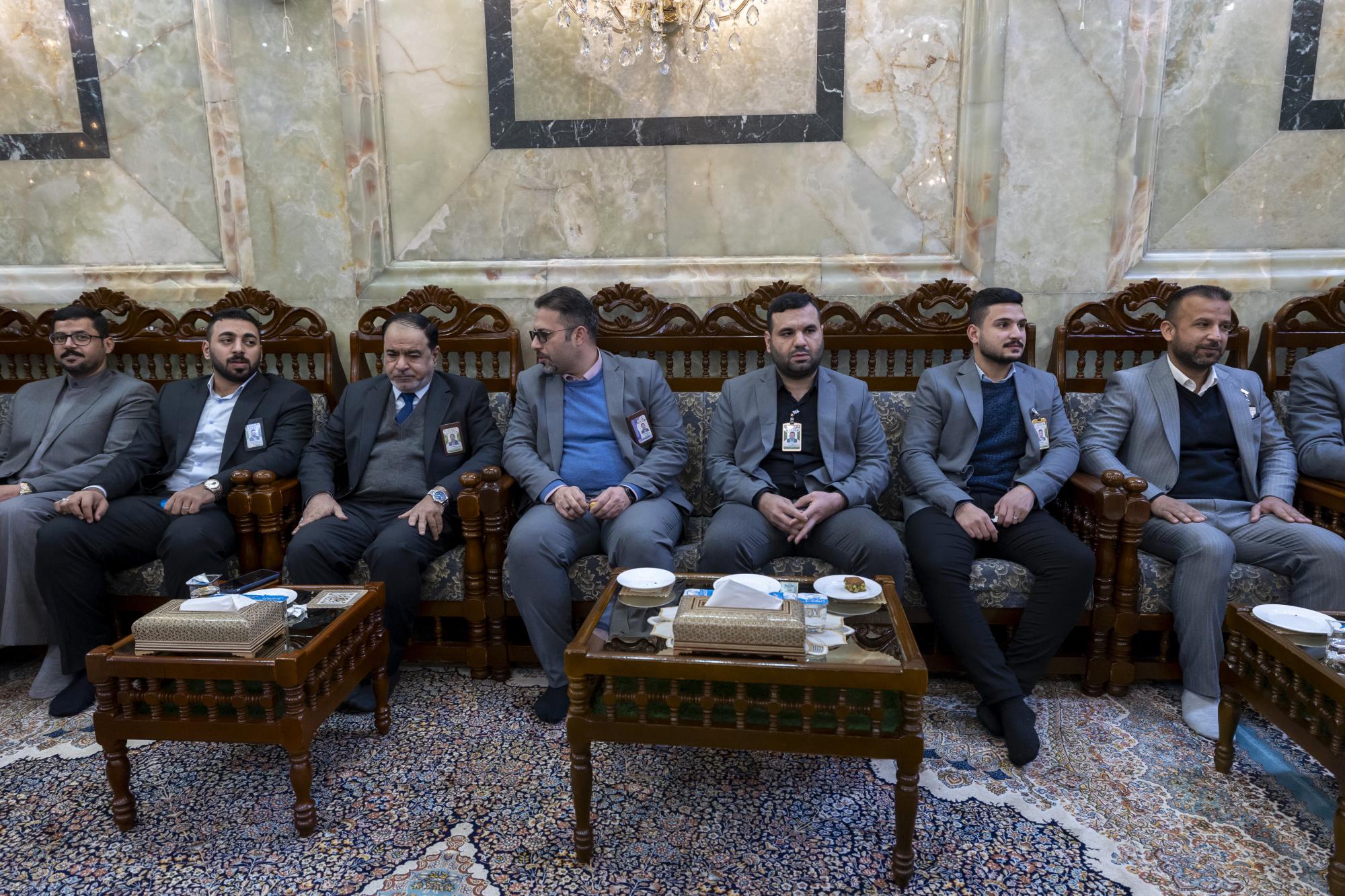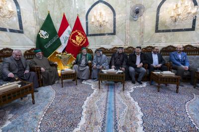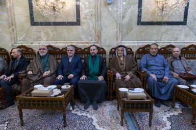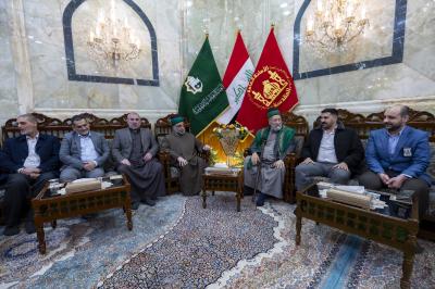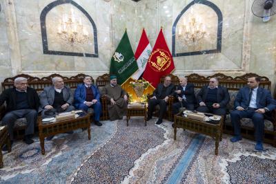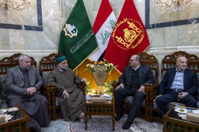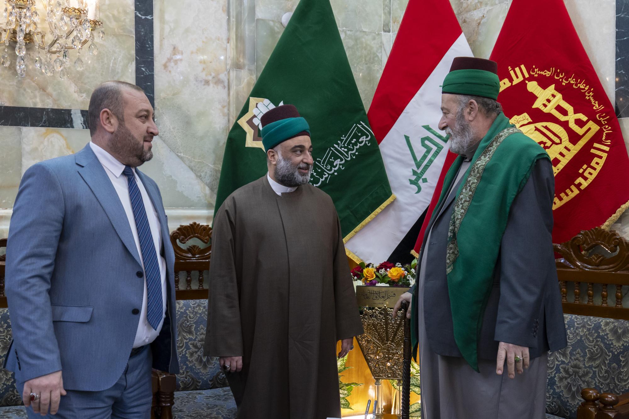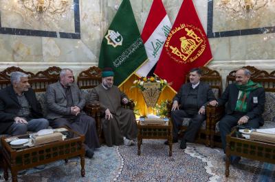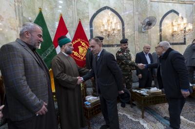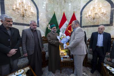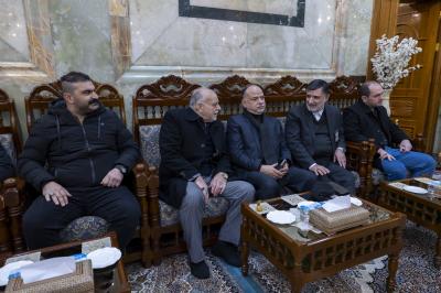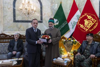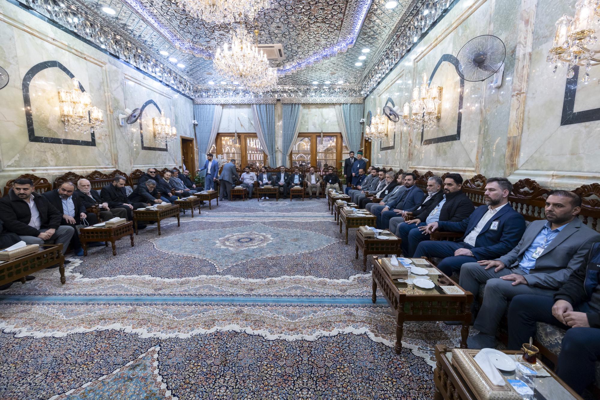 Der Generalsekretär des heiligen Abbassitischen Schreins, Sayed Mustafa Mortadha Aal Dia-Uddin, empfängt weiterhin Gratulanten, die sich anlässlich seiner Wiederernennung durch das schiitische Stiftungsbüro für weitere drei Jahre als Generalsekretär des heiligen Schreins versammelt haben.