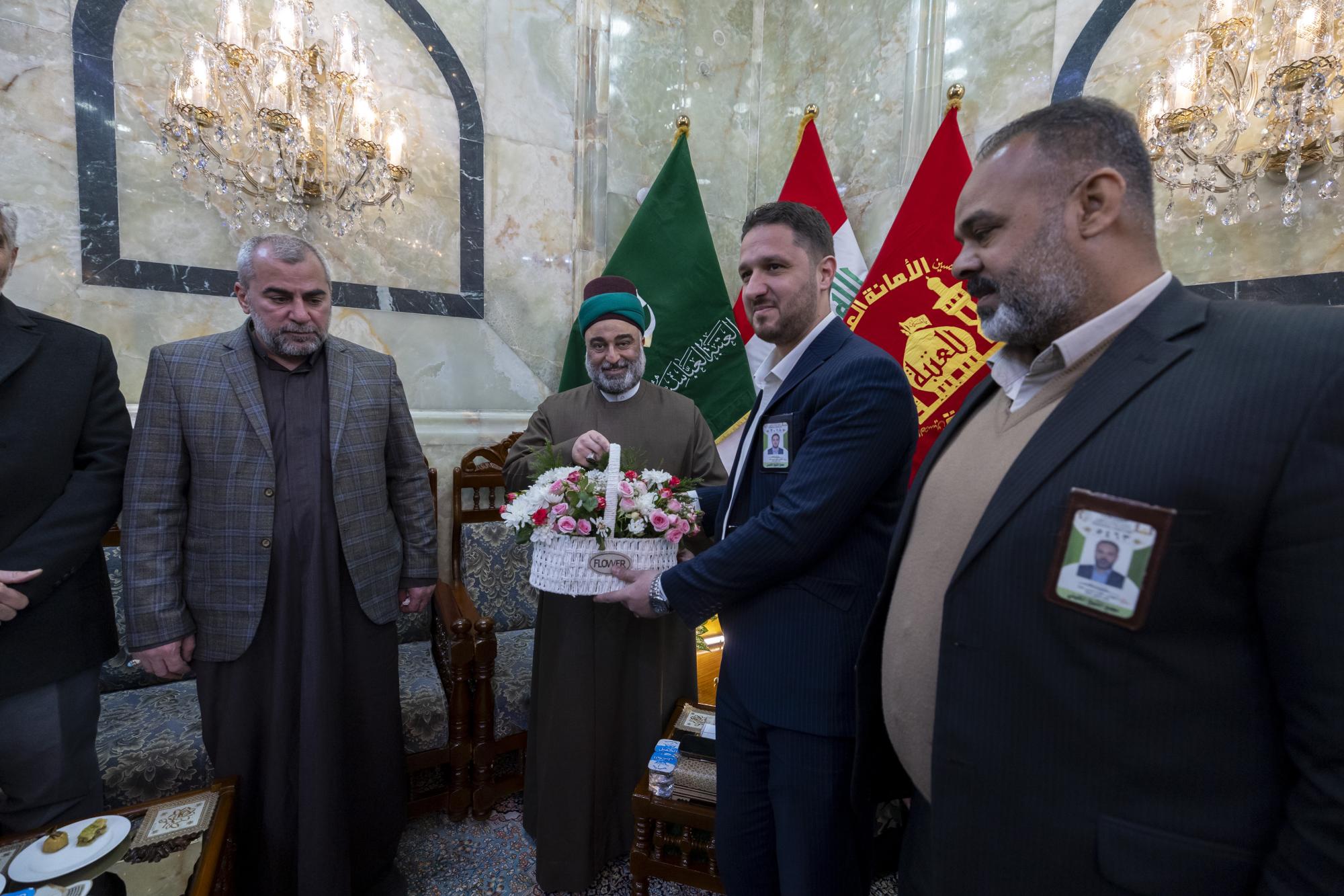 Die Gratulanten sprachen Sayed Aal Dia-Uddin ihre Glückwünsche und Segenswünsche aus und wünschten ihm viel Erfolg bei der Vollendung seiner Karriere im Dienste des Heiligtums von Aba al-Fadl Al-Abbass (Friede mit ihm) und seiner Besucher und baten Allah, den Allmächtigen, ihm bei der Erfüllung seiner Pflichten zu helfen.