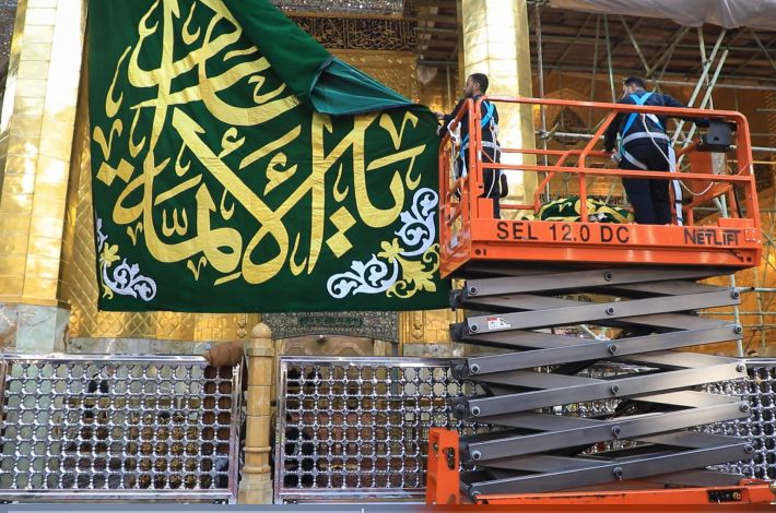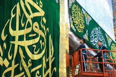 وأشرفت على خياطة القطع واللافتات، شعبة الخياطة والتطريز التابعة لقسم الهدايا والنذور في العتبة المقدسة.