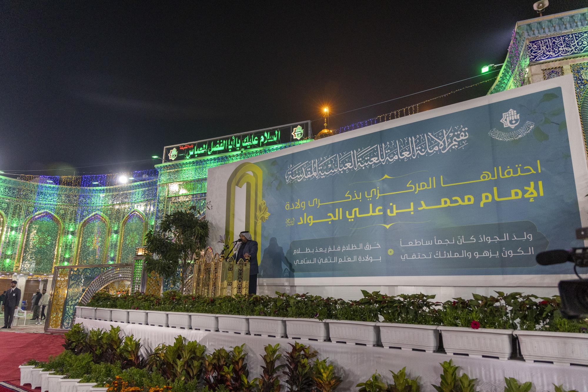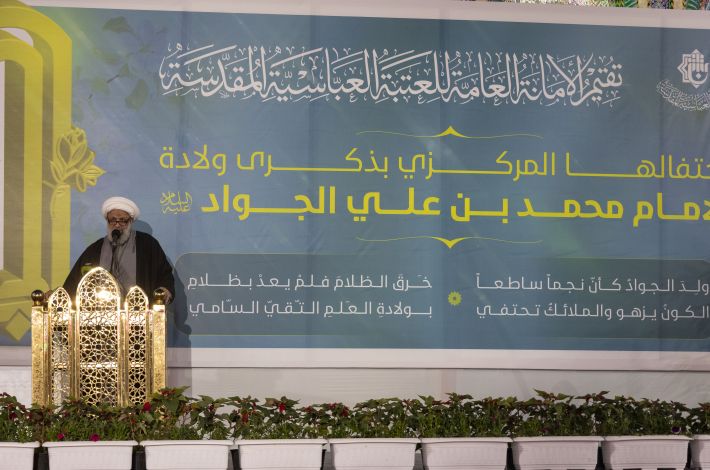 Die Zeremonie begann mit der Rezitation von Versen aus dem Heiligen Koran, gefolgt von einer Ansprache des Generalsekretariats des Abbassitischen Schreins, die von Scheich Ali Mohan gehalten wurde, der zunächst den Anwesenden und der islamischen Nation zu den Geburtstagen der unfehlbaren Imame (Friede mit ihnen) im Monat Rajab gratulierte.