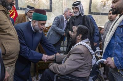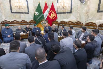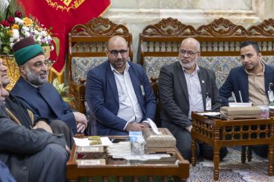 Mukaddes Hz. Abbas (a.s.) Türbesi'nin Genel Sekreteri Seyyid Mustafa Murtaza Âl Ziyauddin, türbenin genel sekreteri olarak üç yıl daha yeniden atanması münasebetiyle tebrik için gelen çeşitli şahsiyet ve heyetleri kabul etmeye devam ediyor.