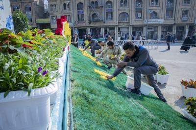 Mukaddes Hz. Abbas (a.s.) Türbesi'nin el-Kefîl Fidelikleri Grubu personeli, Hz. İmam Ali'nin (a.s.) veladet yıldönümü münasebetiyle mukaddes türbenin çevresi ve etrafına süs ağaçları ve doğal çiçekler yerleştirdi.