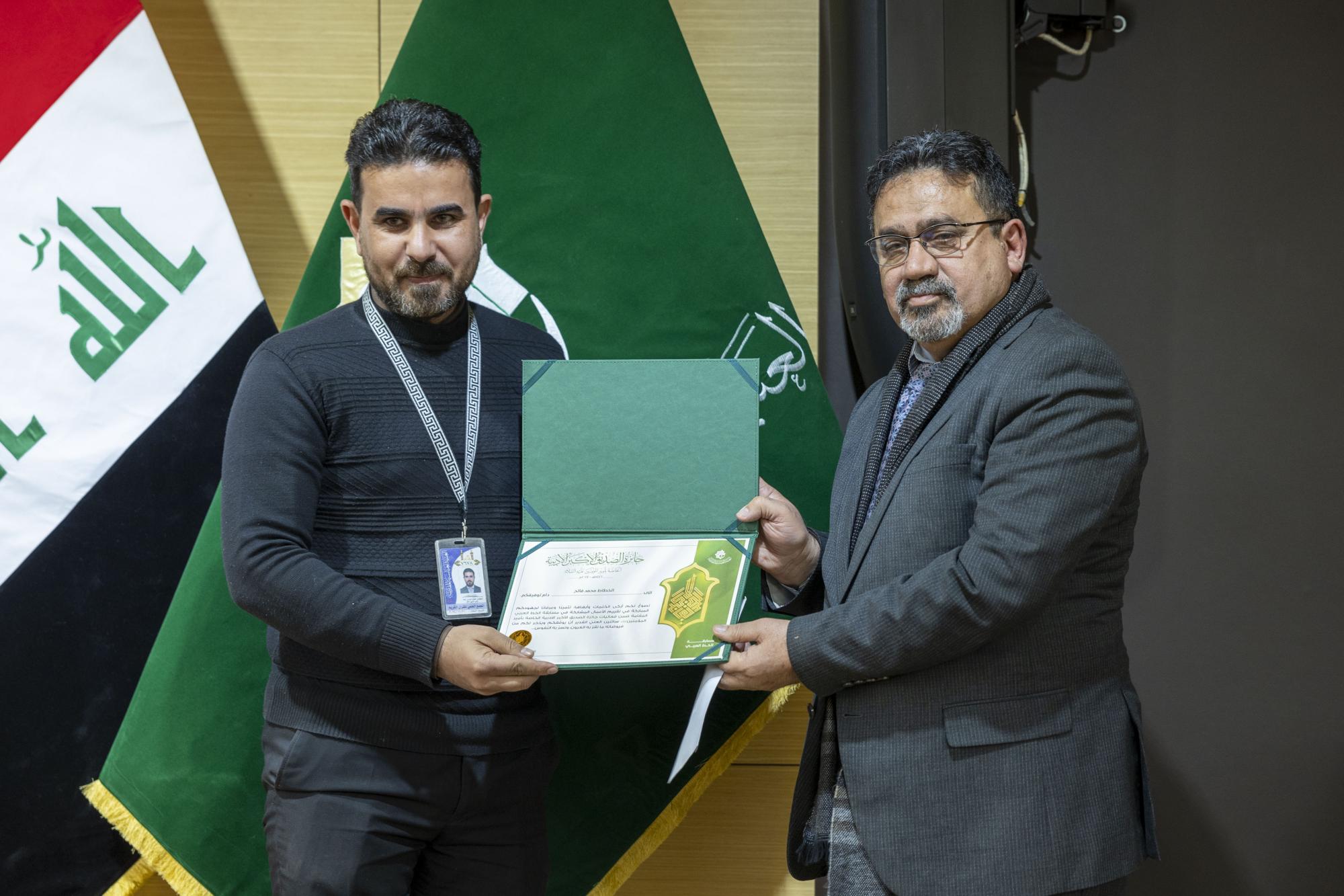 Les comités d'arbitrage ont été honorés par le secrétaire général adjoint; Sayeed Abbas Musa Ahmed, le membre du conseil d'administration, le Dr Afdal Al-Shami, et le président de l'Union des écrivains et auteurs d'Irak, M. Ali Al-Fawaz.