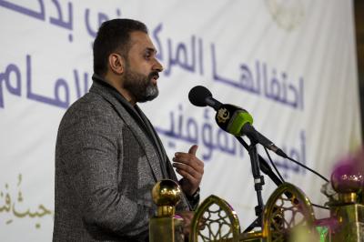 واستُهلّ الحفل بتلاوة آيات من الذكر الحكيم بصوت القارئ حيدر البزوني، أعقبتها كلمة الأمانة العامة للعتبة العباسية ألقاها الشيخ علي موحان، ابتدأها بتقديم التهاني للحاضرين وللأمة الإسلامية بحلول ذكرى ولادة أمير المؤمنين علي بن أبي طالب (عليه السلام).