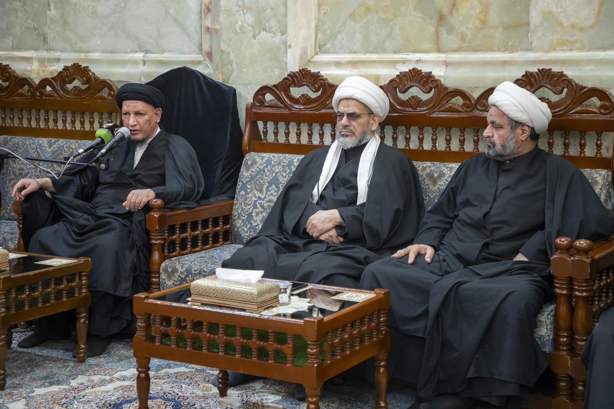 En créant un Majlis de consolation, qui se tient dans la salle de cérémonie dans la cour du sanctuaire d'Abou al-Fadl al-Abbas (que la paix soit sur lui), en présence d'un certain nombre de responsables et de membres du sanctuaire sacré.