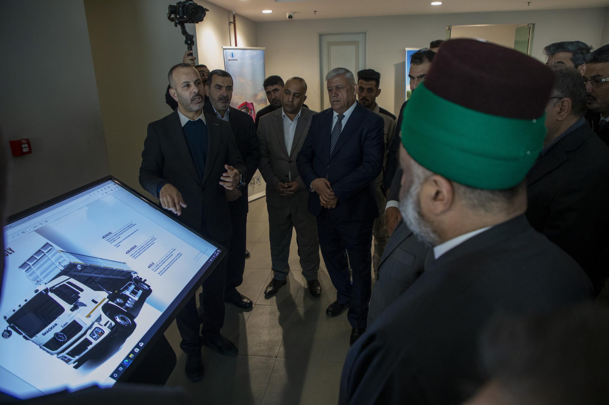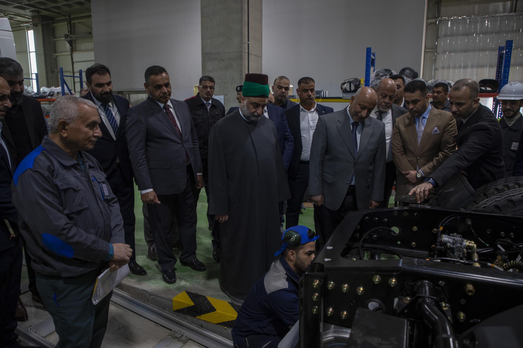 Er wies auch darauf hin, dass "die Infrastruktur des Projekts im Jahr 2020 fertiggestellt wurde und wir im Jahr 2023 beschlossen haben, ein Projekt für die Montage von Lastkraftwagen durch die Gründung der Firma Buraq Al-Qimmah zu starten, die der exklusive Vertreter der chinesischen Firma Shakman im Irak ist".