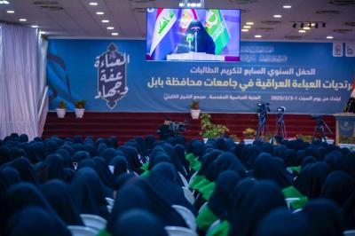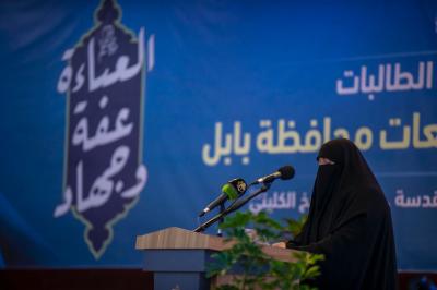 أكدت الطالبة زينب حسين عبد علي في كلمة طالبات جامعات بابل، أنّ العباءة العراقية درع يحصِّن دين المرأة ويصون إيمانها بعيدا عن شبهات الزينة.