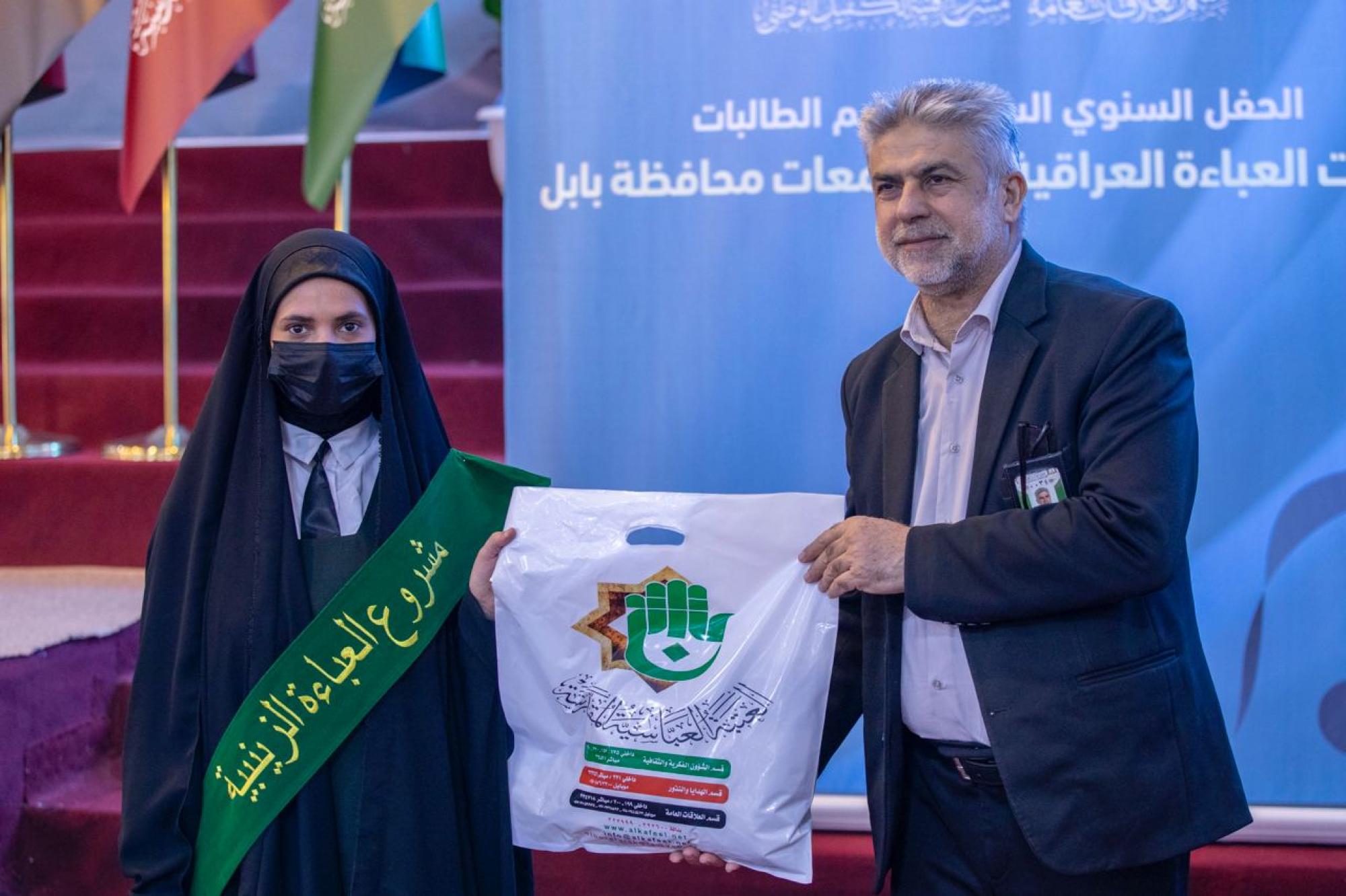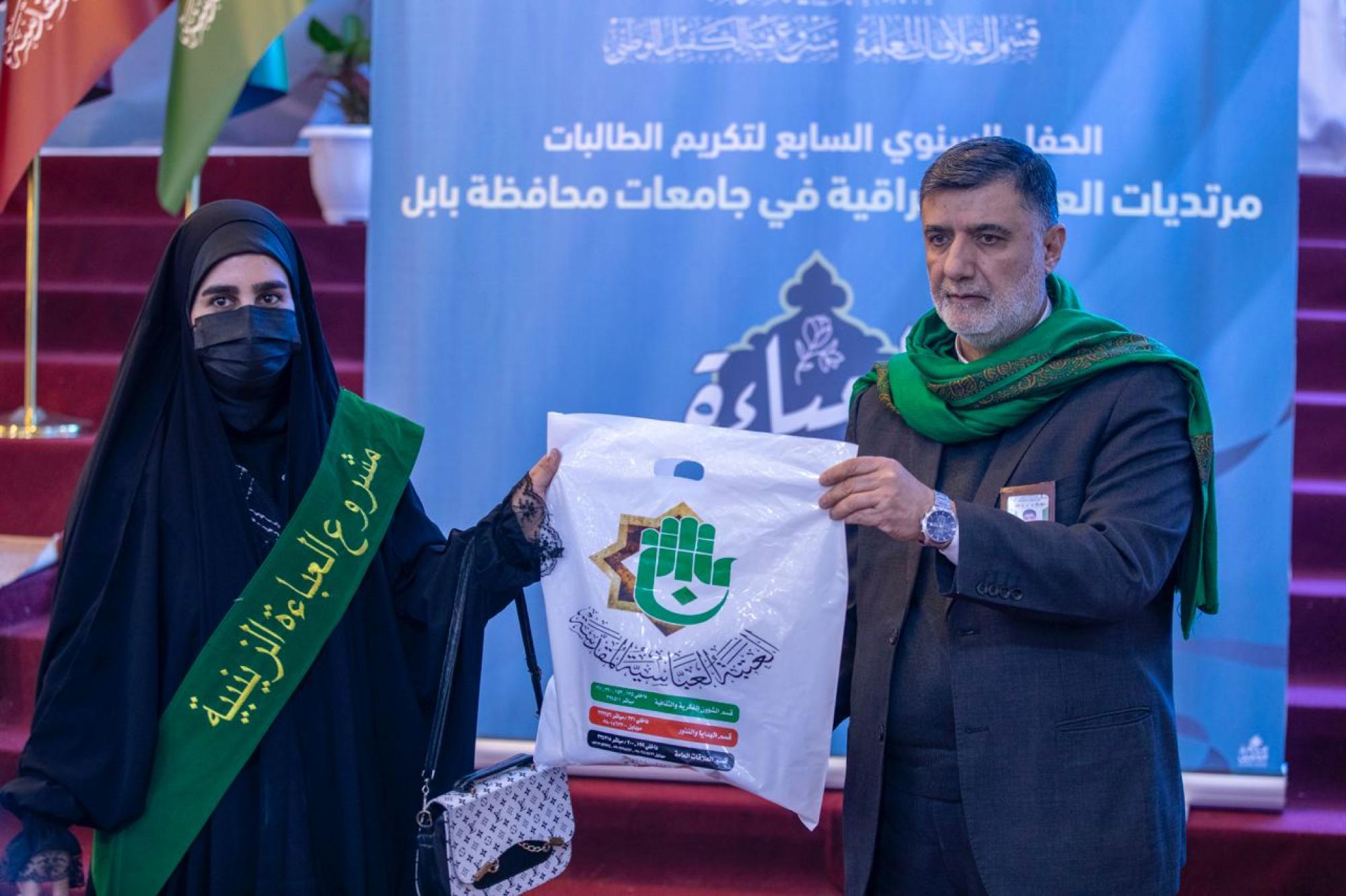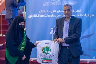 Les étudiants ont été honorés par le secrétaire général adjoint du sanctuaire sacré d'Al-Abbas (p), M. Abbas Musa Ahmed, un membre de son conseil d'administration, le Dr Afdal Al-Shami, le directeur du bureau du conseiller juridique Le gardien du sanctuaire sacré, M. Jawad Al-Hasnawi, M. Adnan Julakhan, et un certain nombre de chefs de ses départements, en plus d'un groupe de responsables du centre et des branches féminine affilié au sanctuaire sacré, en plus du président de l'Université islamique, branche de Babylone, Dr. Haider Al-Quraishi.