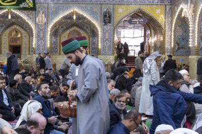 روضہ مبارک حضرت عباس(ع) کے خدام نے حضرت عباس(ع) کے جشن میلاد کے پرمسرت دن روضہ مبارک میں زائرین کا مبارکباد اور متبرک تحائف کے ساتھ خصوصی استقبال کیا۔