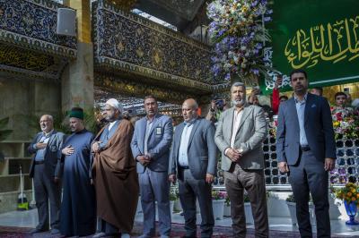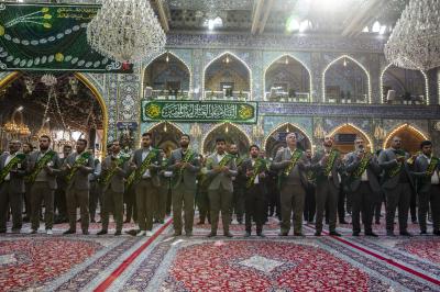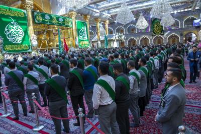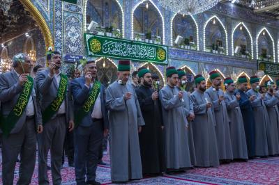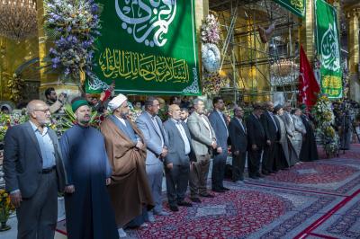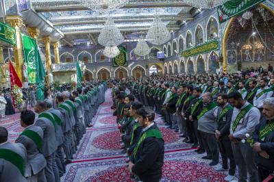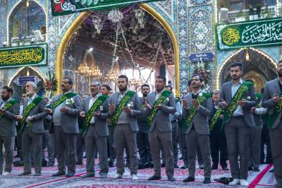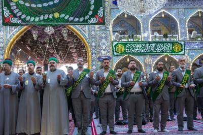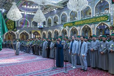La cérémonie de culte a été suivie par le secrétaire général du sanctuaire sacré d'Al-Abbas (p), M. Mustafa Murtada Al-Dia Al-Din, son adjoint M. Abbas Musa Ahmed et les membres de son conseil d'administration M. Laith Al-Moussawi, le Dr Abbas Al-Dada Al-Moussawi et le Dr Afdal Al-Shami, en plus d'un certain nombre de chefs de département et de responsables.