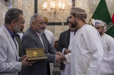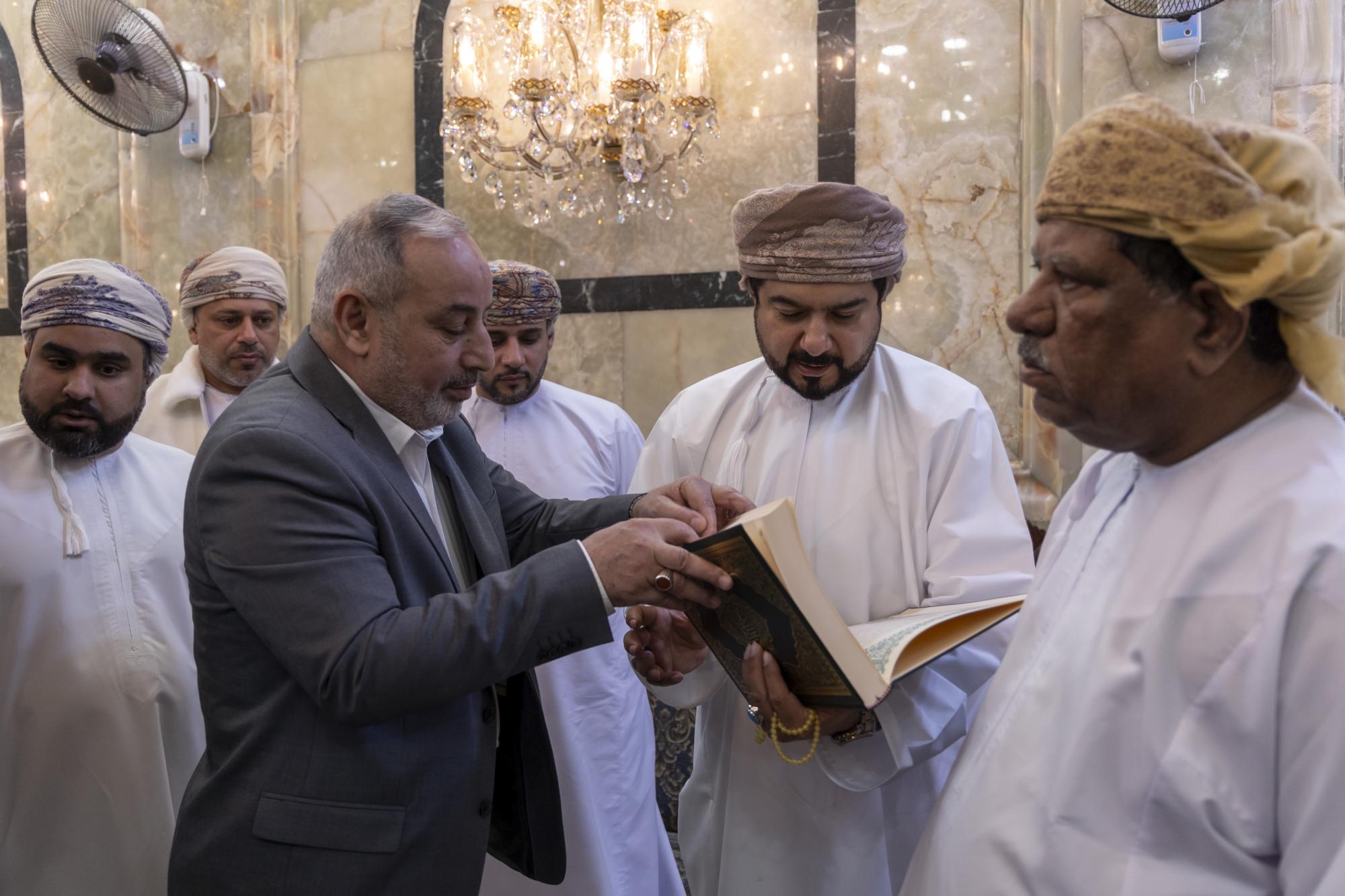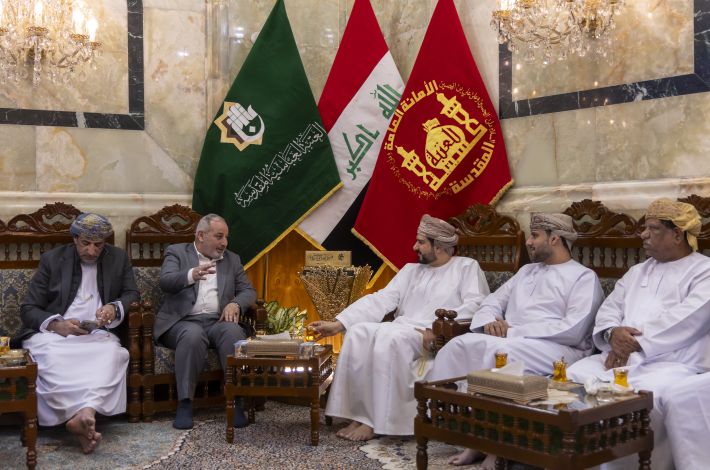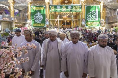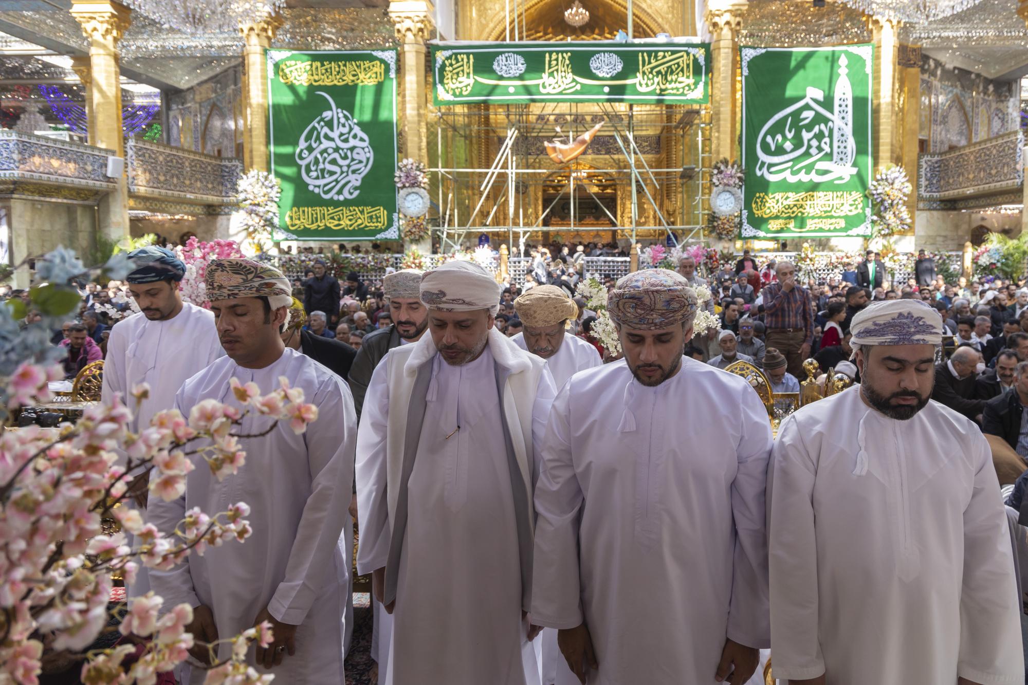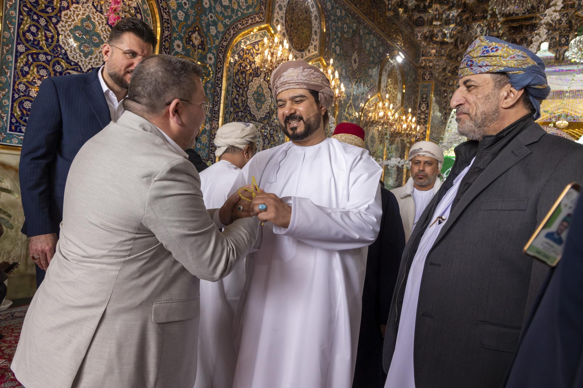 عراق میں تعینات عمان کے سفیرمحمود بن مہنا خروصی اور مختلف کاروباری شخصیات کے ہمراہ آنے والے وزیر کا استقبال روضہ مبارک کے نائب سیکرٹری جنرل عباس موسٰی احمد، دفتر متولی شرعی کے مدیر جواد حسناوی اور مختلف شعبوں کے سربراہان نے کیا۔