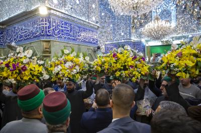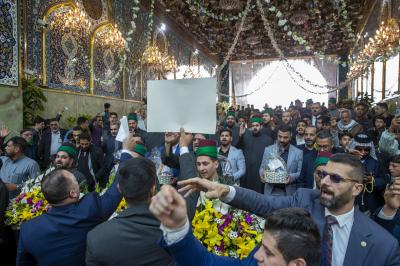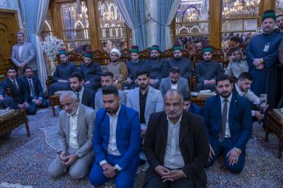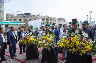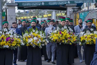 He added that"the delegation set off on a march from the shrine of Imam al-Hussayn (peace be upon him) to the shrine of Aba al-Fadl al-Abbas (peace be upon him), carrying wreaths and bouquets of roses, chanting words expressing the joy that flooded the hearts of believers, with the participation of a group of visitors".