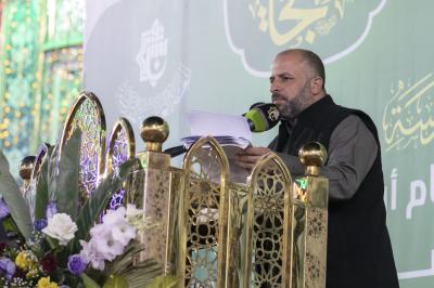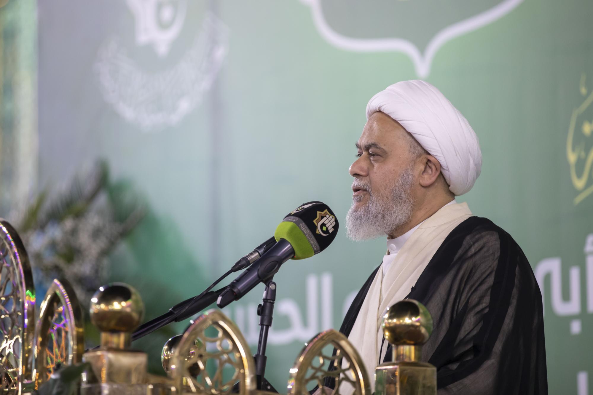 El-Kerbela'i konuşmasında, Hz. İmam Seccad'ın (a.s.) mübarek hayatının farklı yönlerine değinerek Hz. Resulullah'ın (s.a.a.) nezdindeki faziletlerine ve yüce makamına, adalete dair ilkeleri pekiştirme açısından oynadığı büyük role ve ümmetin ıslahındaki etkisine değindi.