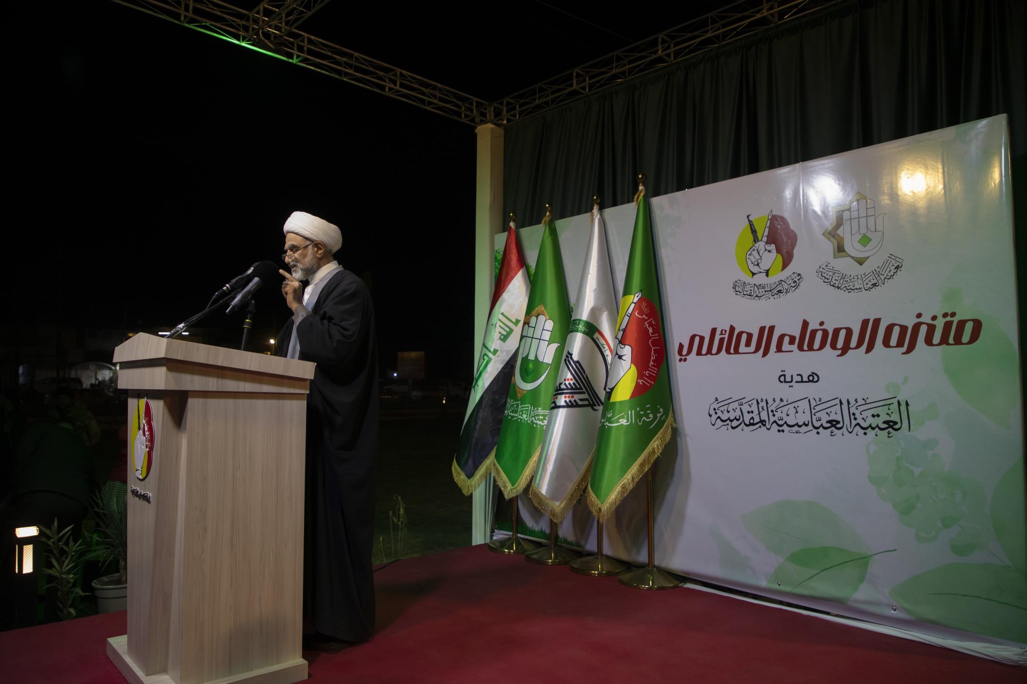 Le représentant de l'autorité religieuse suprême du gouvernorat de Diwaniyah, Cheikh Basem Al-Waili, a salué les efforts du Saint Sanctuaire Al Abbas (p) et de la Division Abbas (que la paix soit sur lui) dans la création du parc familial Al-Wafa.