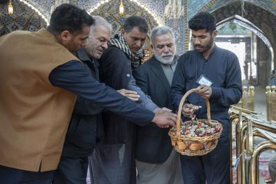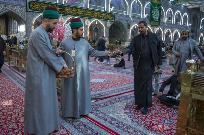 وعملت ملاكات العتبة المقدّسة على تهنئة الزائرين وتوزيع قطع الحلوى عليهم؛ تعبيرًا عن السرور بهذه المناسبة العظيمة.